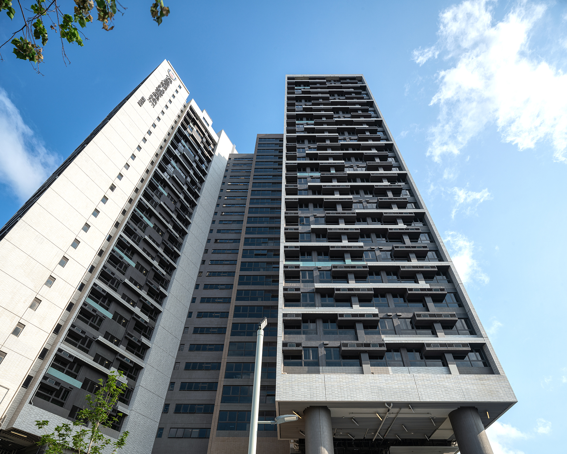 The Youth Oasis is a 27 storeys building located at 18 Tai Shu Ha Road West, Yuen Long. The site occupies an area of 6 118 m2 with total construction floor area (CFA) about 41 159 m2. The building tower comprises a non-domestic portion (From B/F to 1/F) providing library, reading room, multi-purpose room, outdoor basketball court, kitchen, terrace garden and basement car-park; and the domestic portion above (from 2/F to 25/F) provides total 1680 bedspaces including communal kitchen and laundry room on each floor to accommodate working youth aged between 18 to 30.