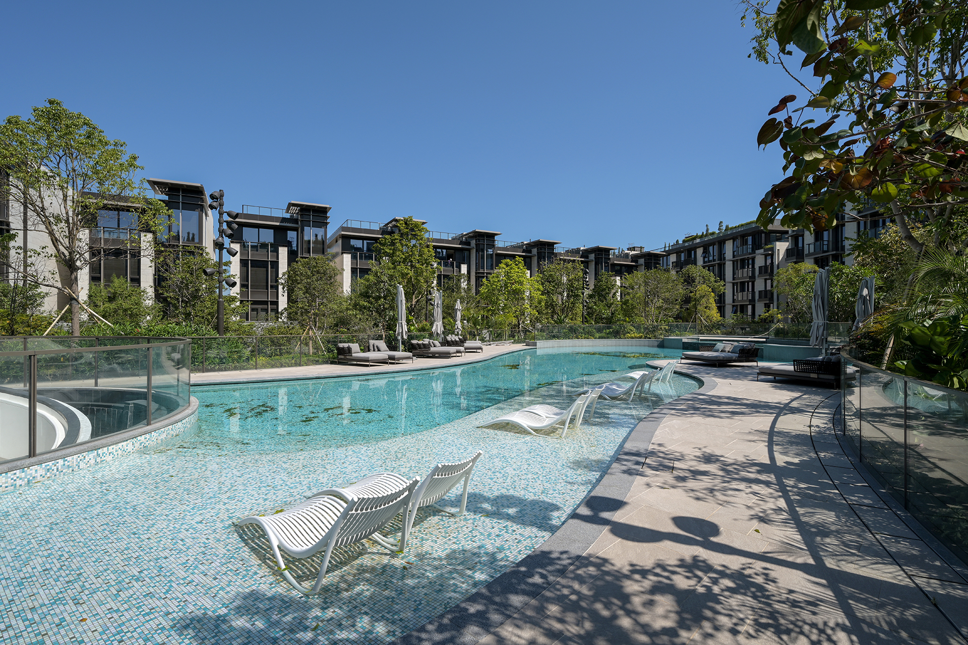 This residential development comprises of 14 5-storey low-rise blocks and 36 3-storey houses. The buildings are arranged at both sides of a central meandering spine which also serves as emergency vehicular access. The outdoor swimming pool, which is embraced by splendid vegetation, will form the focus of the major communal area in the development.