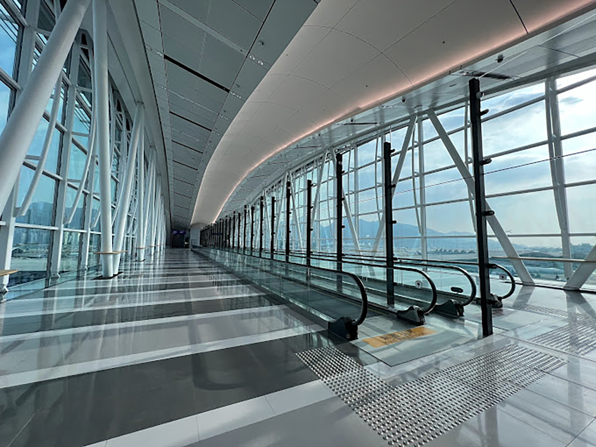 Appeared as a bridge of 130m span 28m high, the bridge is practically a 10-storey fully all-weather 24-hour in operation building of about max. floor plate 3800sqm. with amenities of restaurants, an information centre, shops, viewing decks and interesting glass floors experience apart from being an easier and more energy-efficient connection between two concourses.