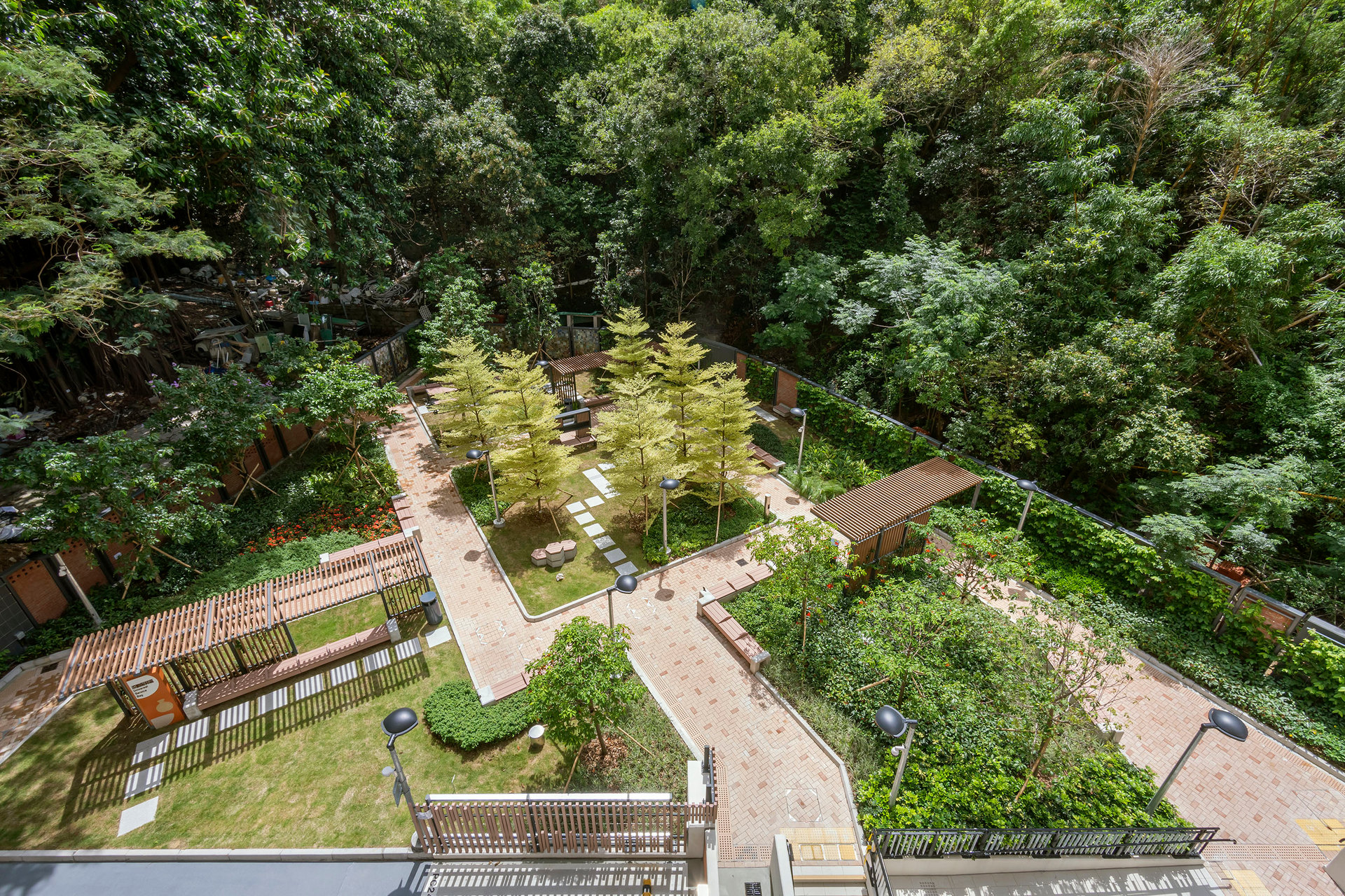 The estate features universal accessibility elements such as age-friendly corridors and fitness trails, green living initiatives like native plantings and central lawn areas, and urban connectivity through pedestrian-friendly art works arcades and multipurpose covered space. The design also pays homage to Tuen Mun's ceramic heritage through material choices and art installations while maintaining modern functionality.