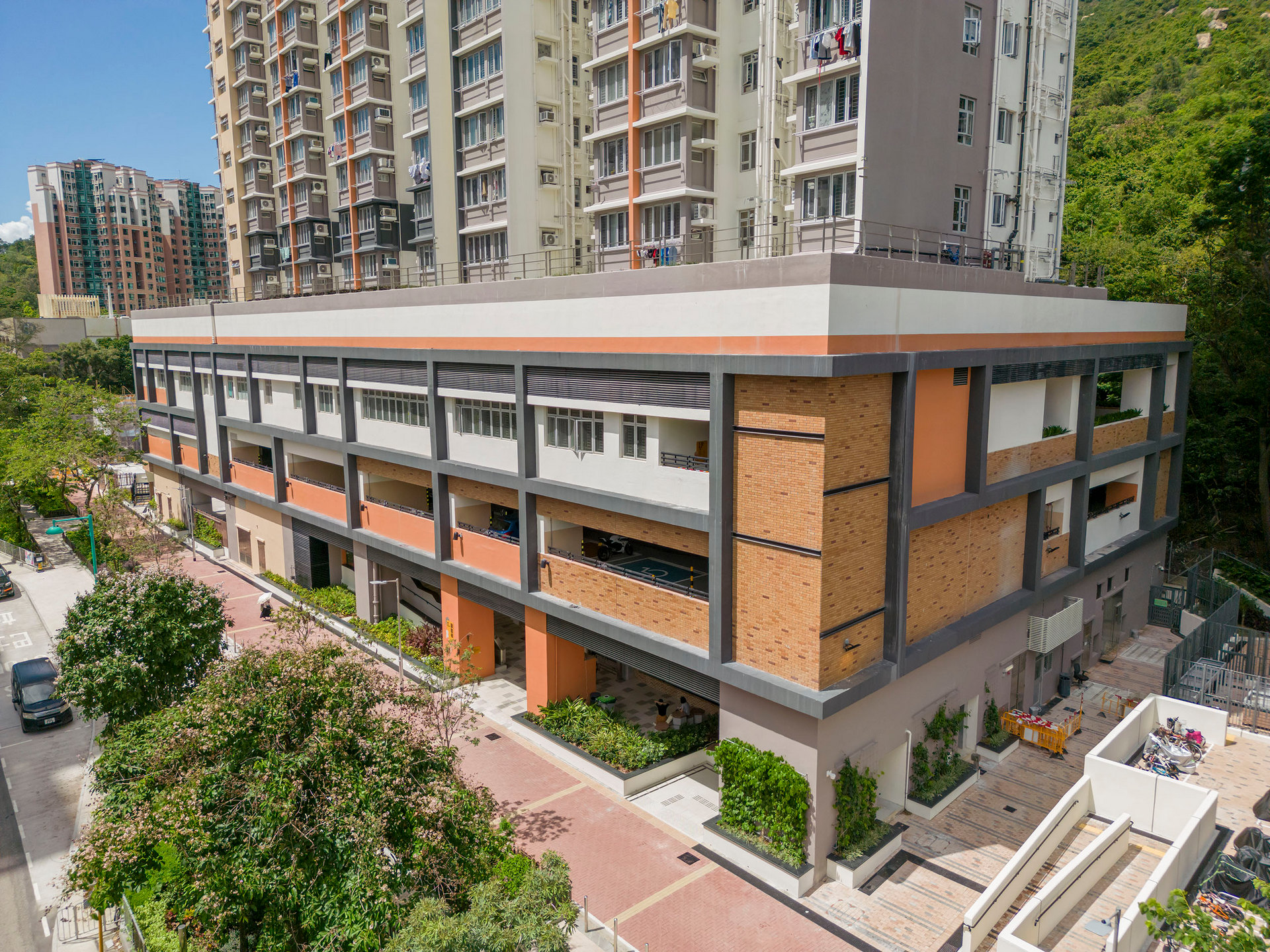 Hin Fat Estate is a public housing development in Tuen Mun with a 34-storey residential tower housing 872 flats and approximately 2,500 residents. The estate includes a 3-storey podium with social welfare facilities and carpark. The design focuses on community well-being by incorporating health-focused amenities, sustainable landscapes, and inclusive social spaces to create a vibrant, intergenerational community.