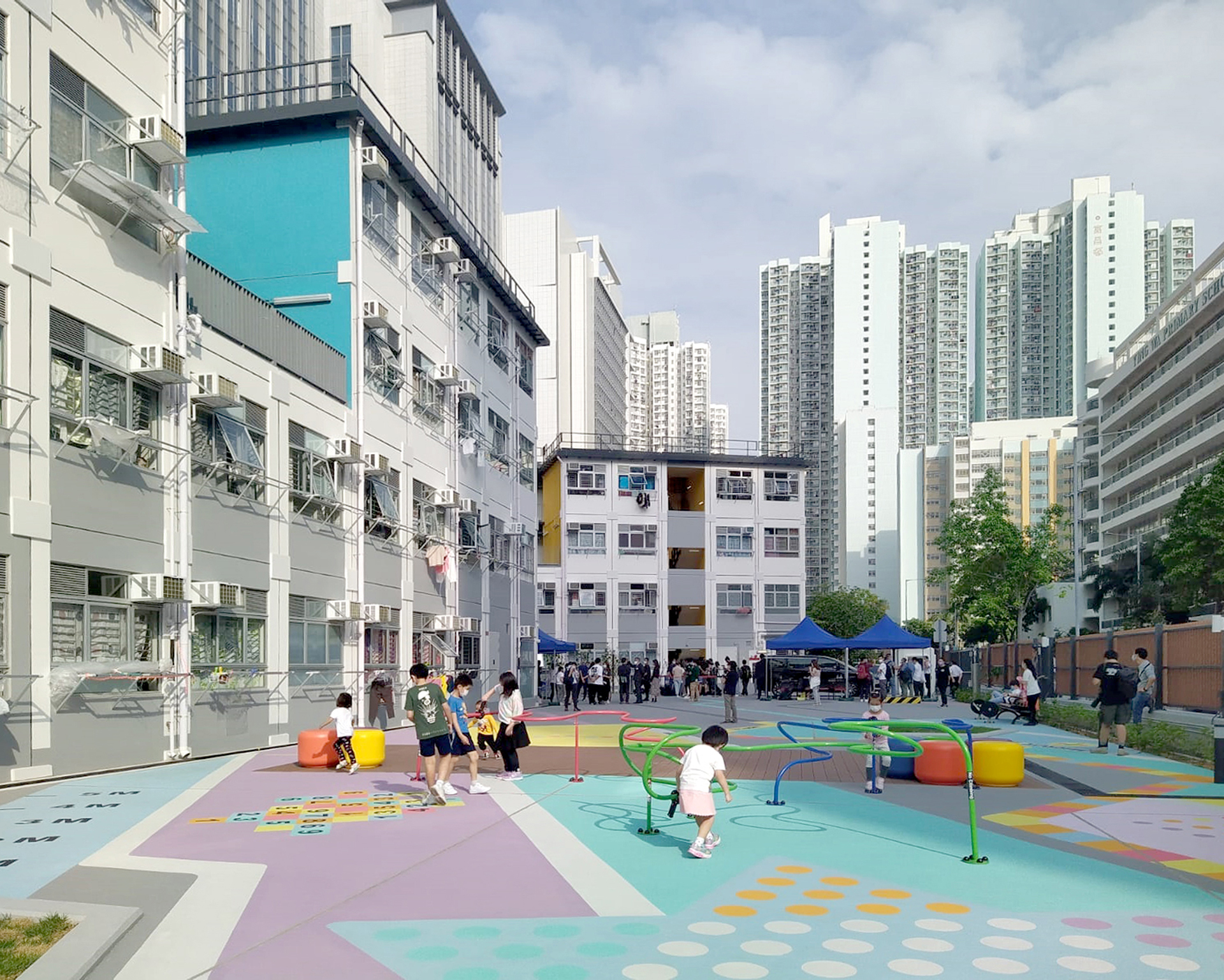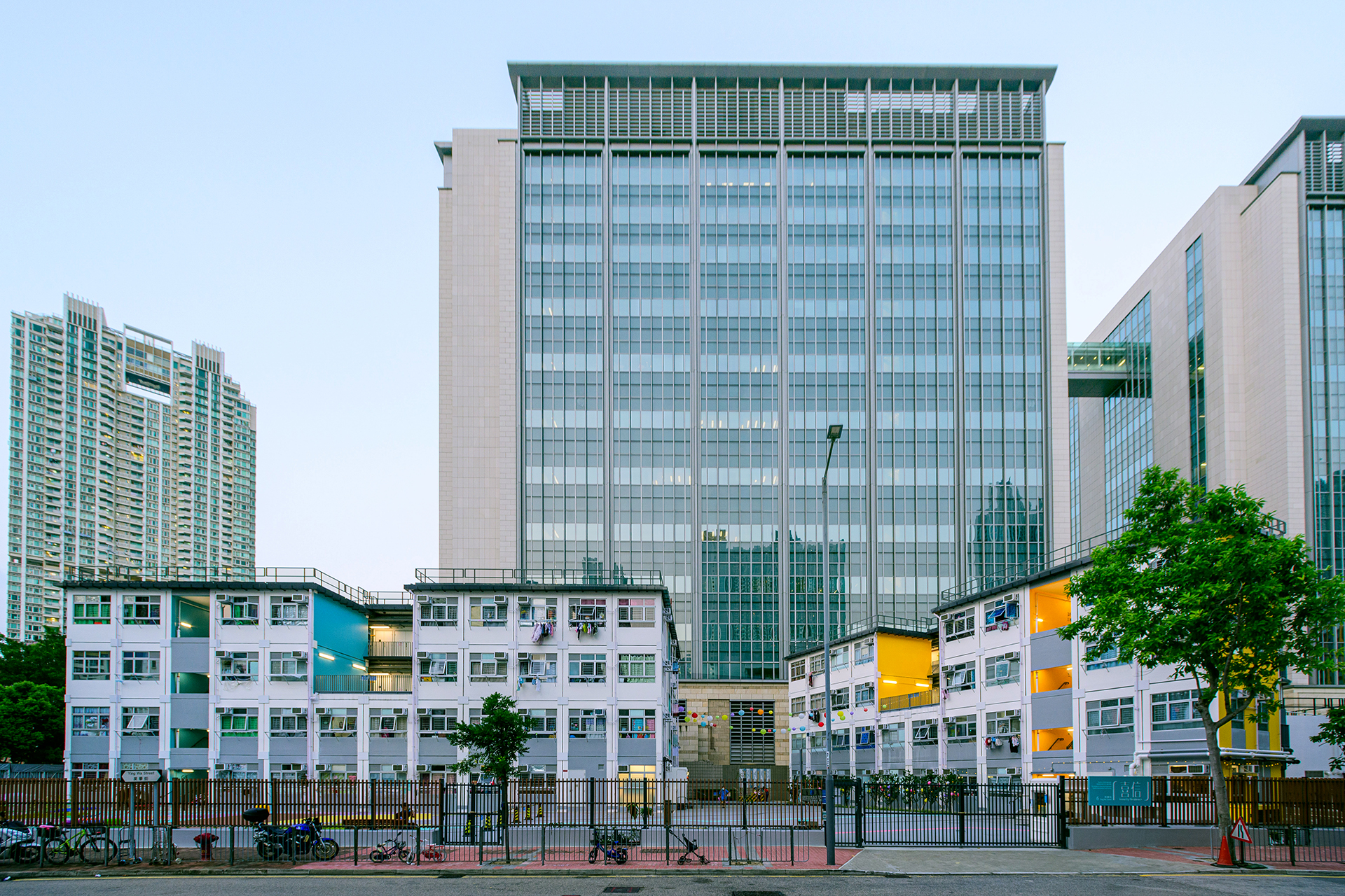 Tenacity Residence is a two-block 140-unit transitional housing at Ying Wa Street, Sham Shui Po to provide homes with dignity and hope for the future, and to respond to the housing shortage issue in Hong Kong. Tenacity Residence offers a supportive community to be built up with practical and cost-effective methods adopting innovative modular integrated construction (MIC) technology. Opportunizing on the existing drainage reserve constraint on site, Tenacity Residence is set back to create a welcoming communal space between our residents and the neighborhood. Accessible landscapes such as playgrounds and intergenerational play space encourage social interaction among the residents and neighborhood. All corridors are open and naturally ventilated, reducing the energy demand for air-conditioning. All stairs, corridors and roof slabs are fully furnished off-site, and the pre-finished MiC units are designed to be dismantled and transferred to another location for use, enhancing its long term sustainability.