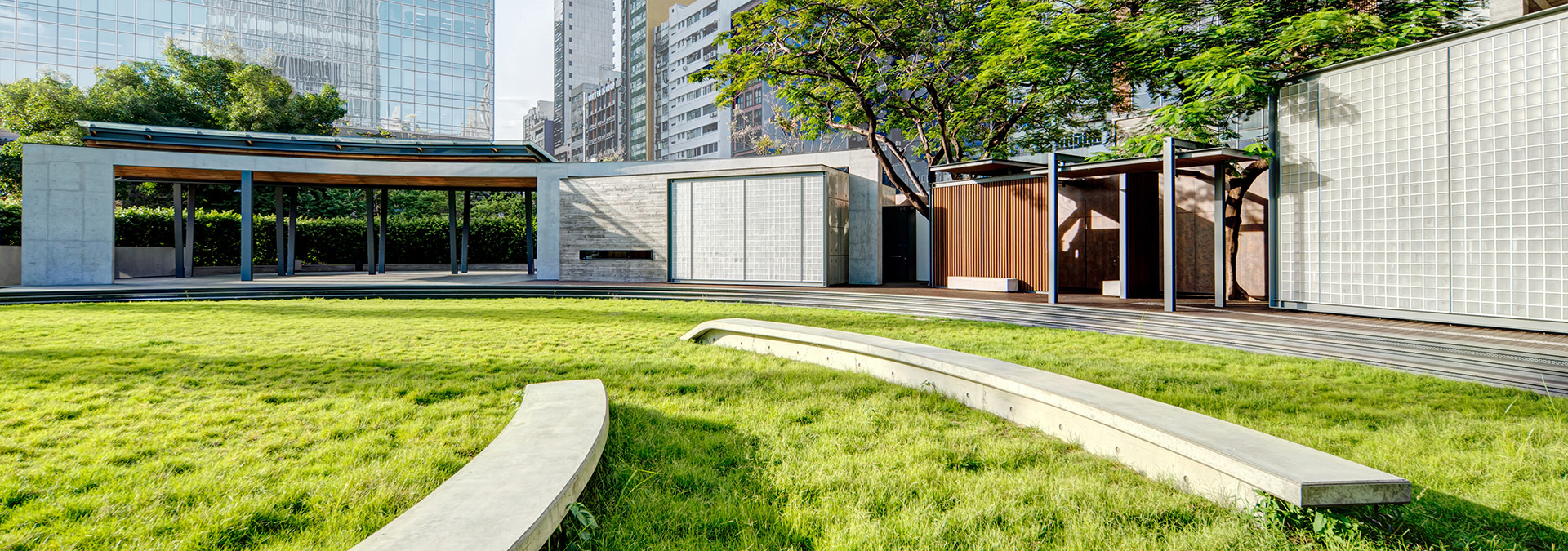 By carefully placing layers of transparent screens and trellis in the blossoming garden and along the walkway, different outdoor rooms of various characters are defined to allow the public to sit, to play, and to enjoy leisure at all times. Passing through the outdoor room, integrating with the mature existing trees, and emerge themselves into the main stage of the circular lawn. The idea of pavilions among trees became one of the ideals of architecture in both Chinese culture and European picturesque garden. Outdoor pocket spaces of various characters are defined by landscape. The landscape and screen walls are defining different activity zones in the park.