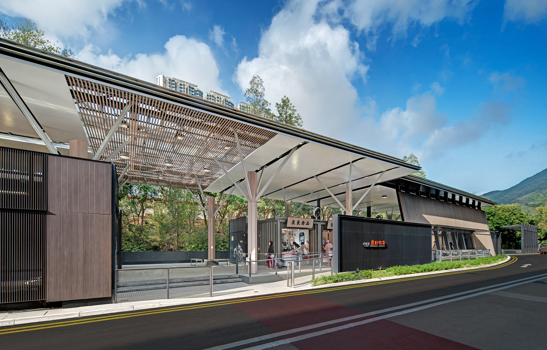 Tung Chung Sunlight Market is located on Lantau Island in Hong Kong. As a satellite town which developed from a rural fishing village, Sunlight Market provides a transitional arrangement in Tung Chung to meet high local demand of fresh food. This architectonic intervention reintegrates an underutilized traffic island to local area, giving a new meaning to the place.