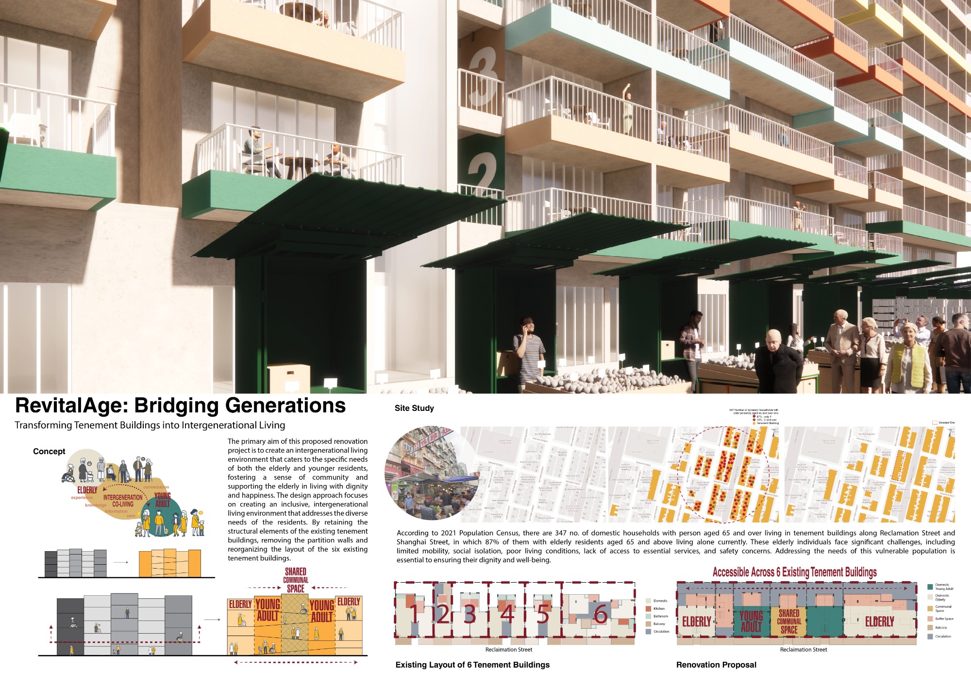 His design proposal approaches the issue of Hong Kong’s “double aging” in both pragmatic and innovative ways with strategic interventions for the elderly and for the built environment.