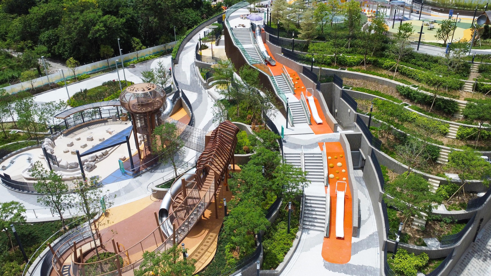 The Cha Kwo Ling Promenade is a shining example of sustainability and innovation in urban development. This 1.8-hectare waterfront space integrates the “single site, multiple use” concept by transforming the roof of the Kwun Tong Sewage Pumping Station into a vibrant landscaped deck. The Landscaped deck, known as the “Pump Park,” features over 60 play facilities, including a popular water play area, catering to all age groups with different ability.
