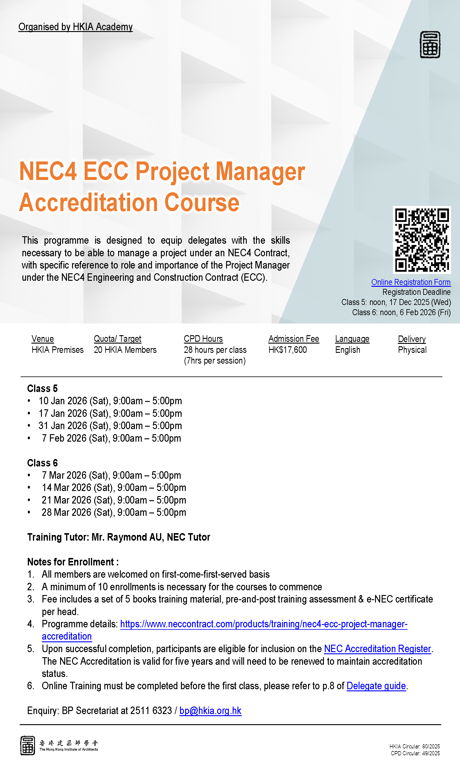 4. Programme details: https://www.neccontract.com/products/training/nec4-ecc-project-manager-accreditation
