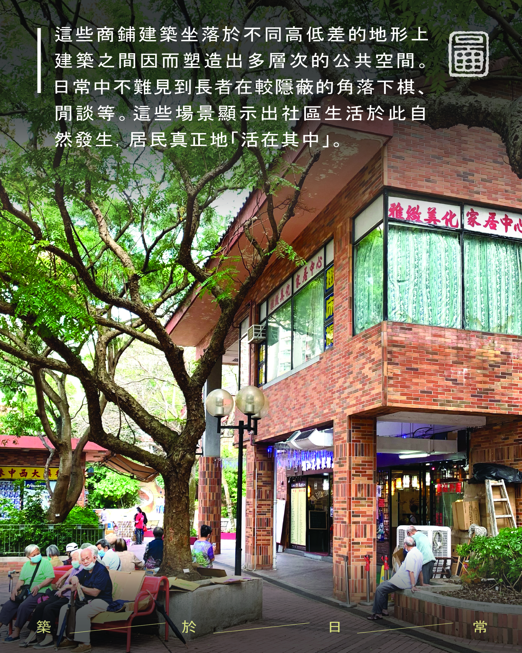 Its award-winning design by the Housing Authority consists of 11 dispersed buildings: 9 retail blocks, a restaurant, and a market, inspired by surrounding rural settlements. These low-rise structures, linked by sheltered walkways for climatic practicality, form a network reminiscent of village houses — encouraging residents to move freely in open spaces, unbounded by rigid circulation.