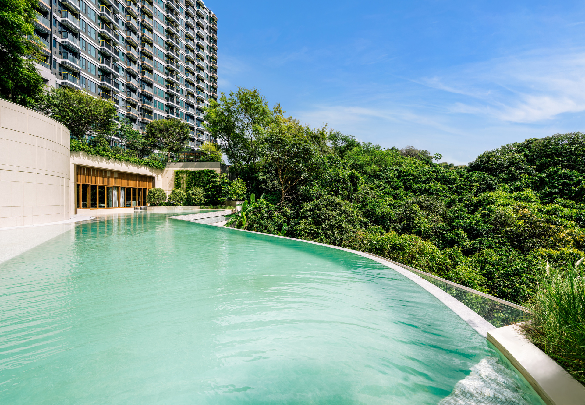 OMA OMA是一个融合“森林度假”概念的住宅项目, 坐落屯门扫管笏路高处,依山傍海,绿意盎然。项目提供466个住宅单位,建于绿化会所基座之上。两棵保育榕树为地标,基座设有空中花园、无边际泳池与仿木饰面,展现自然共融。邻近大榄涌水塘,景致静谧。设计顺应地形,减少地盘工程,串联室内外空间,打造城市中的自然绿洲。