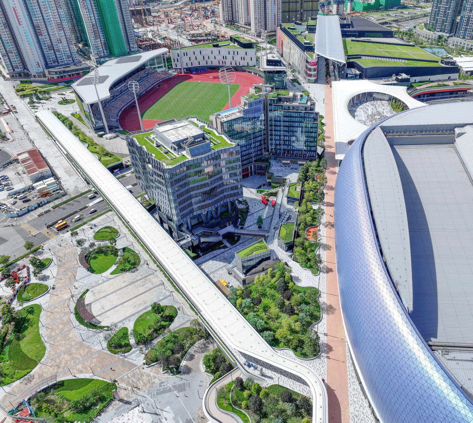承启道的综合发展项目坐落于启德体育园的中心位置,包含旗舰酒店、三层高的露天购物中心、企业办公楼、活动广场、公共休憩空间和地下停车场。 基于项目的多元化功能和独特的场地环境,项目透过开放建筑和三维室外空间设计,使整体佈局和建筑上都能体现“超越边界的交织”的理念,连结启德体育园营造一个充满活力的氛围。