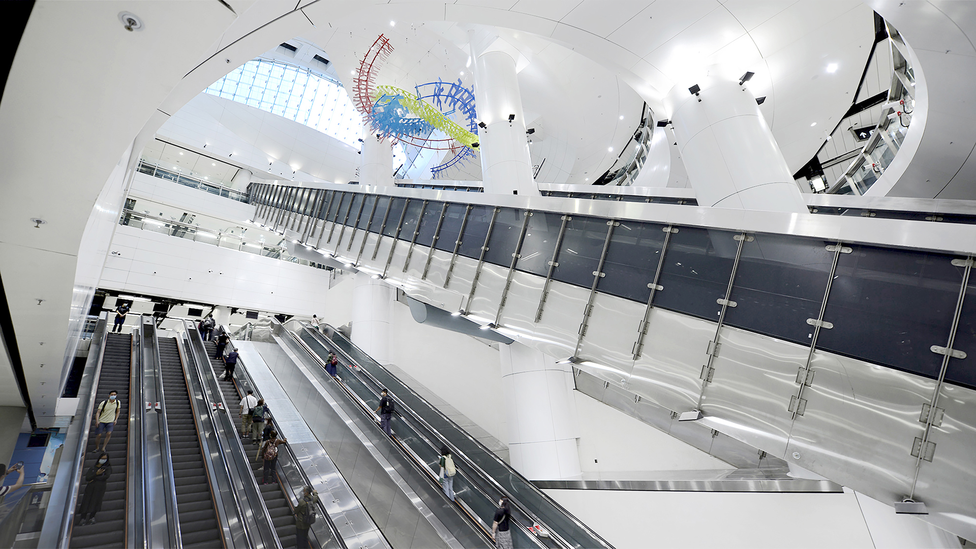 金钟站扩建项目连接四条铁路綫,项目极具挑战性,团队需确保站点规划、生命安全、核心工程顺利完成,同时避免影响现有铁路运营及乘客体验。 港铁与奥雅纳秉承以人为本的概念,实现30米高的地下中庭设计,以巨型天窗引入自然光,为乘客提供主要移动及换綫通道,提升乘客舒适度,并以高效垂直运输方式应对金钟站的乘客流量。