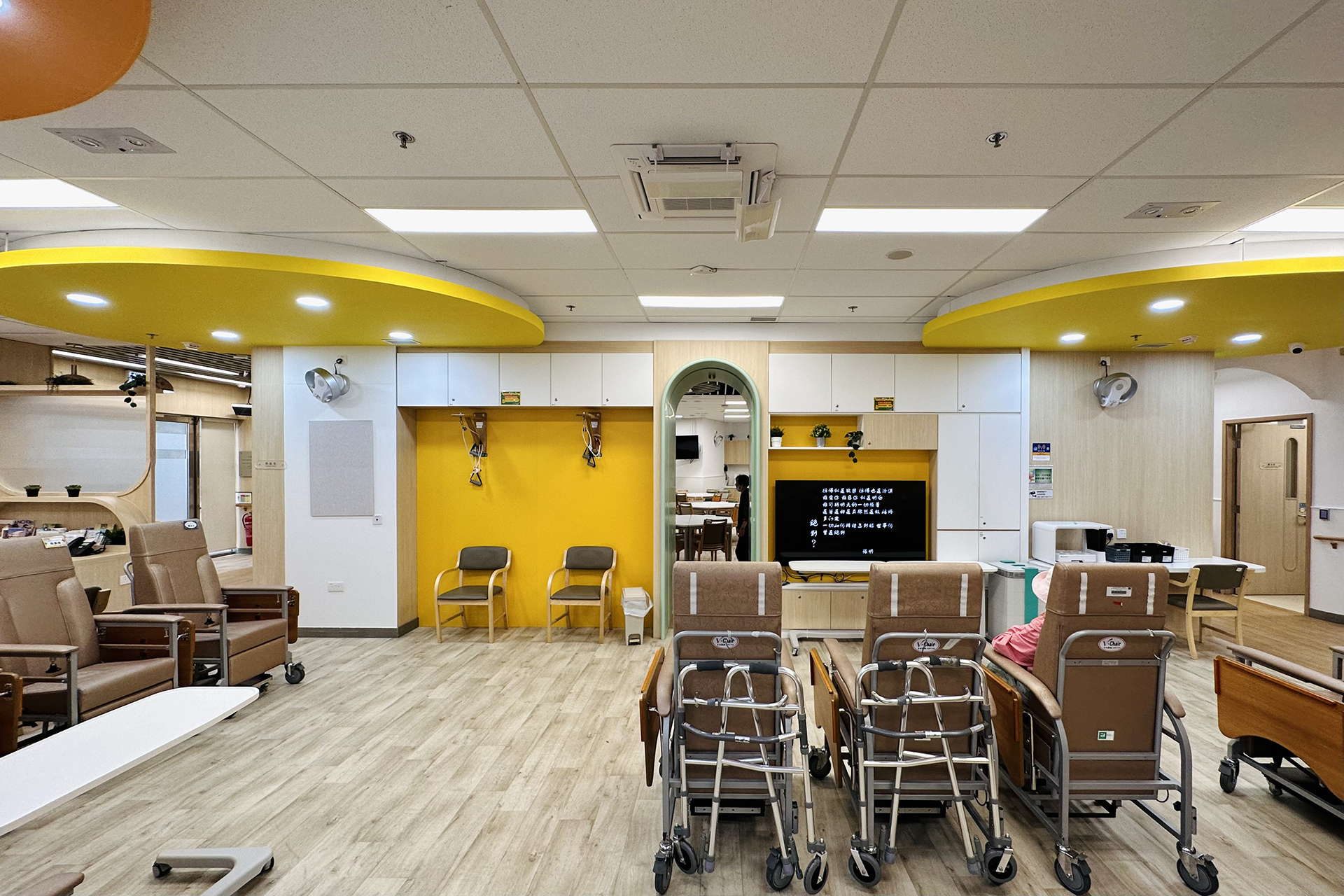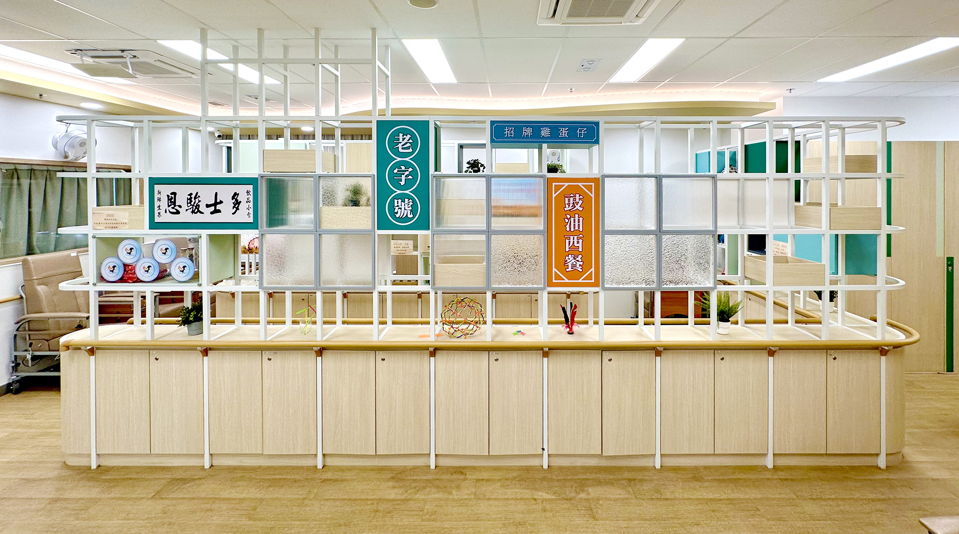 此项目位于火炭骏洋邨骏尔楼地下,单位面积约490平方公尺米。用家大多是患有认知障障碍症的长者,因此大部分环境设施,如感官室、休息区、散步区等,皆针对用家的特性而设计。