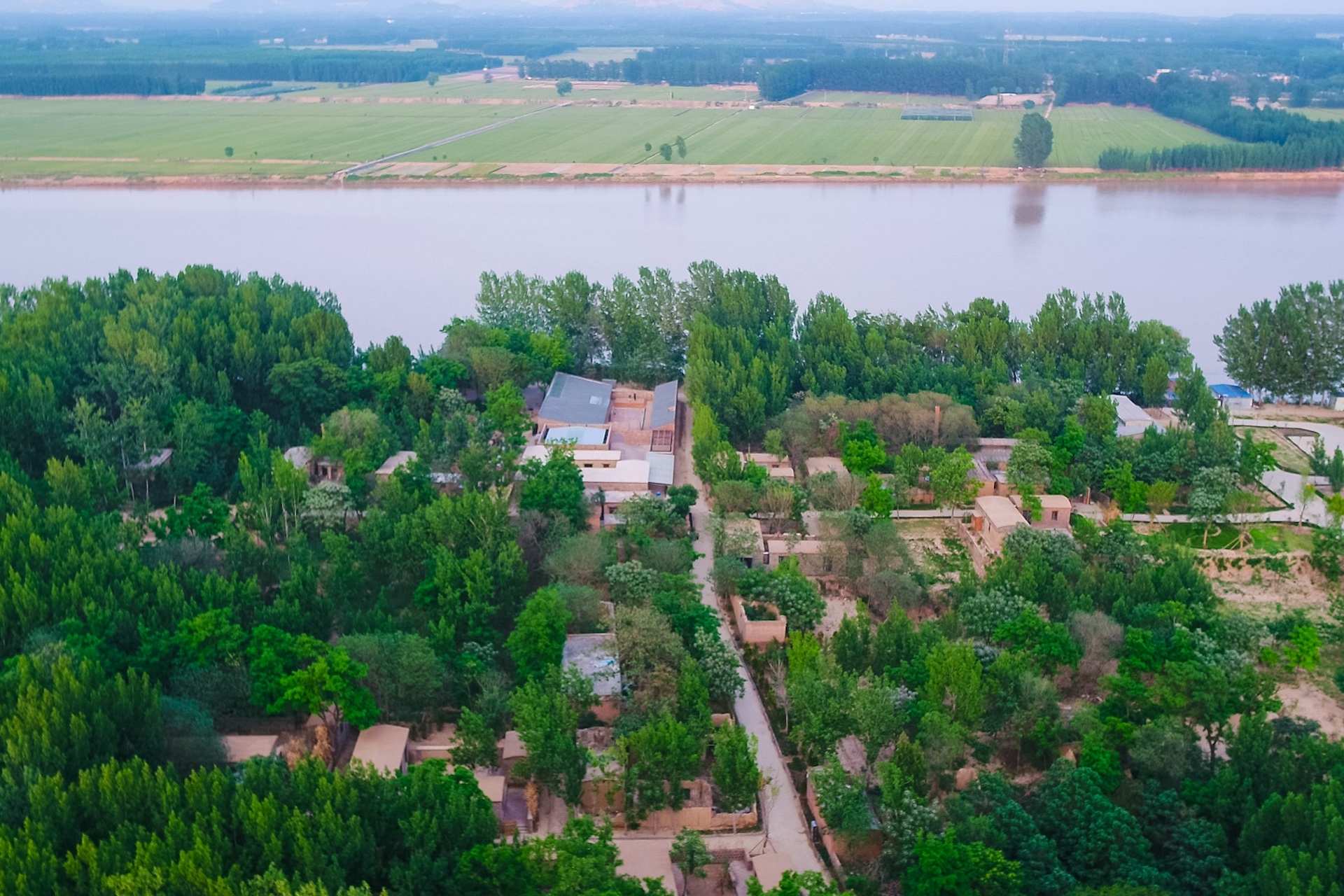 姜村位于中国北方河南省与山东省交界处的黄河岸边,距今已有 400 多年的历史。这里是 3000 多年前姜子牙后裔居住的村落。该项目是一个小型乡村酒店社区,由十个当地民居改造院落丶三栋公共文化建筑和两栋林中树屋组成。它还包括基础设施改造丶村庄整体保护和有机更新。