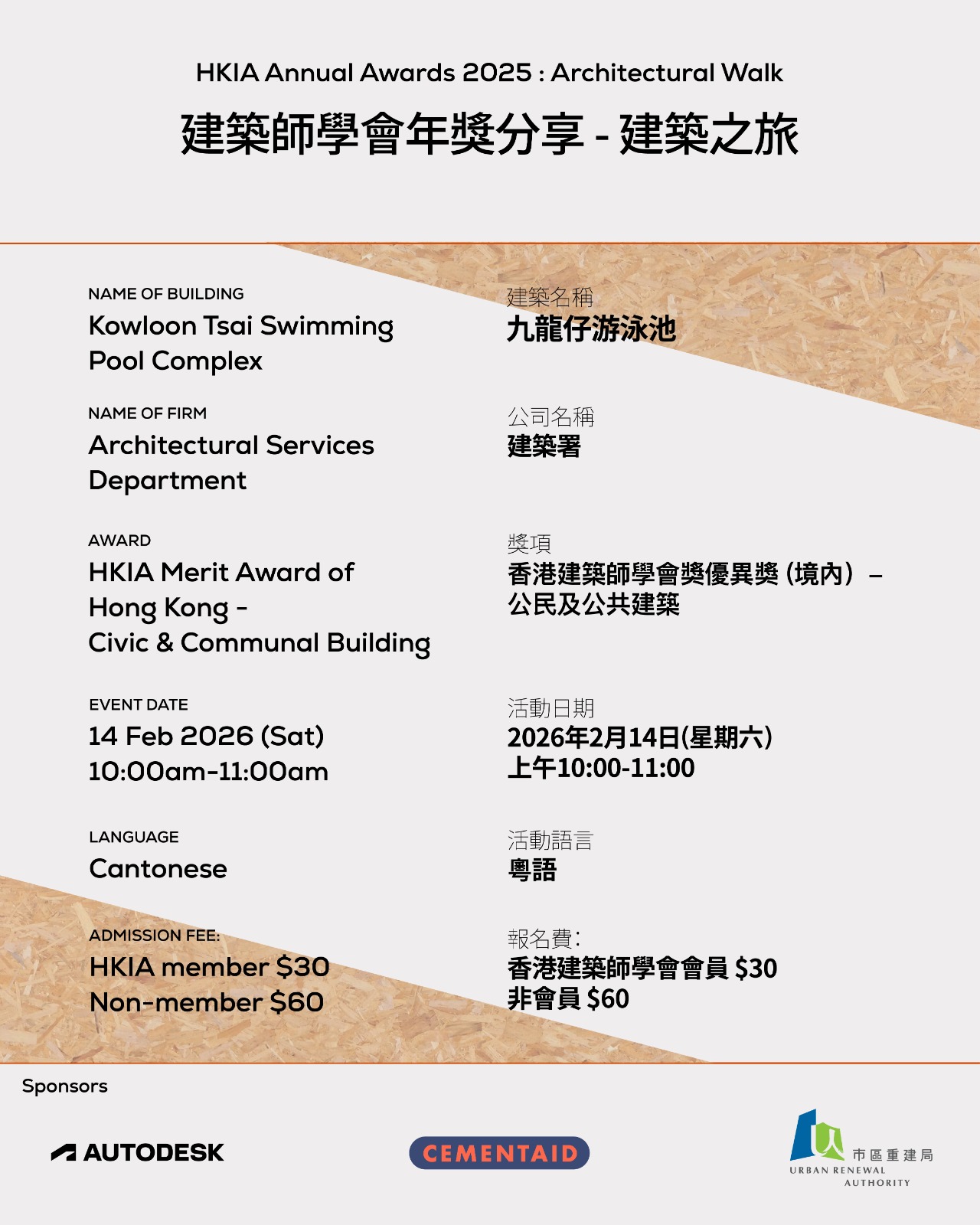 HKIA Architectural Walk #1 HKIA Merit Award of Hong Kong - Civic & Communal Building Kowloon Tsai Swimming Pool Complex