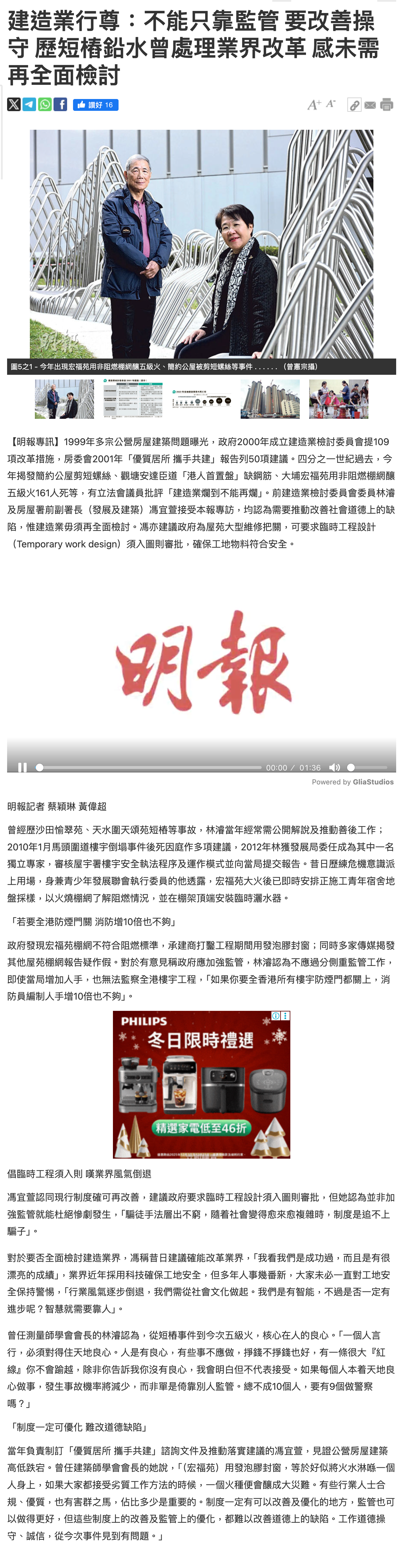 香港国际创科中心优势不可替代 文汇网 评论 https://www.wenweipo.com/a/202512/20/AP6945b2d1e4b0bf0d4e6475f2.html 建造业行尊:不能只靠监管 要改善操守 历短桩铅水曾处理业界改革 感未需再全面检讨 明报 港闻 https://news.mingpao.com/pns/%e6%b8%af%e8%81%9e/article/20251221/s00002/1766253711368