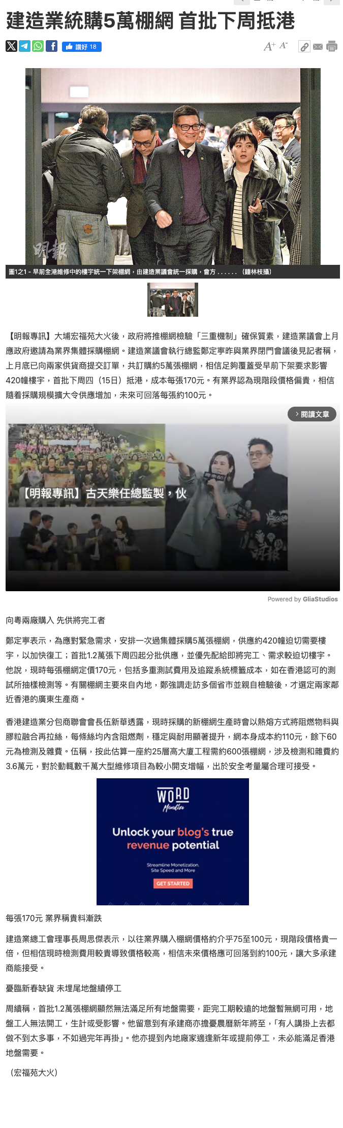 建造业统购5万棚网 首批下周抵港 明报新闻网 港闻