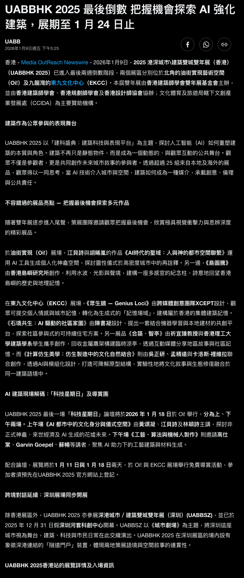 UABBHK 2025 最后倒数 把握机会探索 AI 强化建筑,展期至 1 月 24 日止 Yahoo! 港闻 https://hk.news.yahoo.com/uabbhk-2025-%E6%9C%80%E5%BE%8C%E5%80%92%E6%95%B8-%E6%8A%8A%E6%8F%A1%E6%A9%9F%E6%9C%83%E6%8E%A2%E7%B4%A2-ai-092500691.html