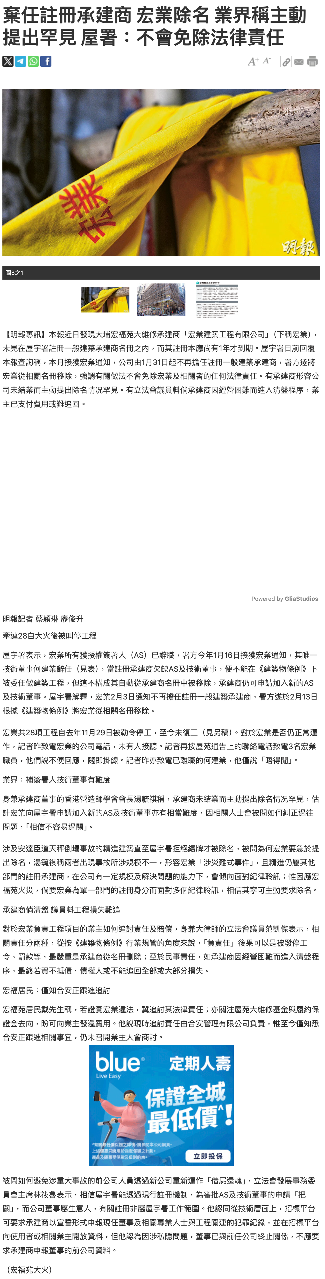 弃任註册承建商 宏业除名 业界称主动提出罕见 屋署:不会免除法律责任