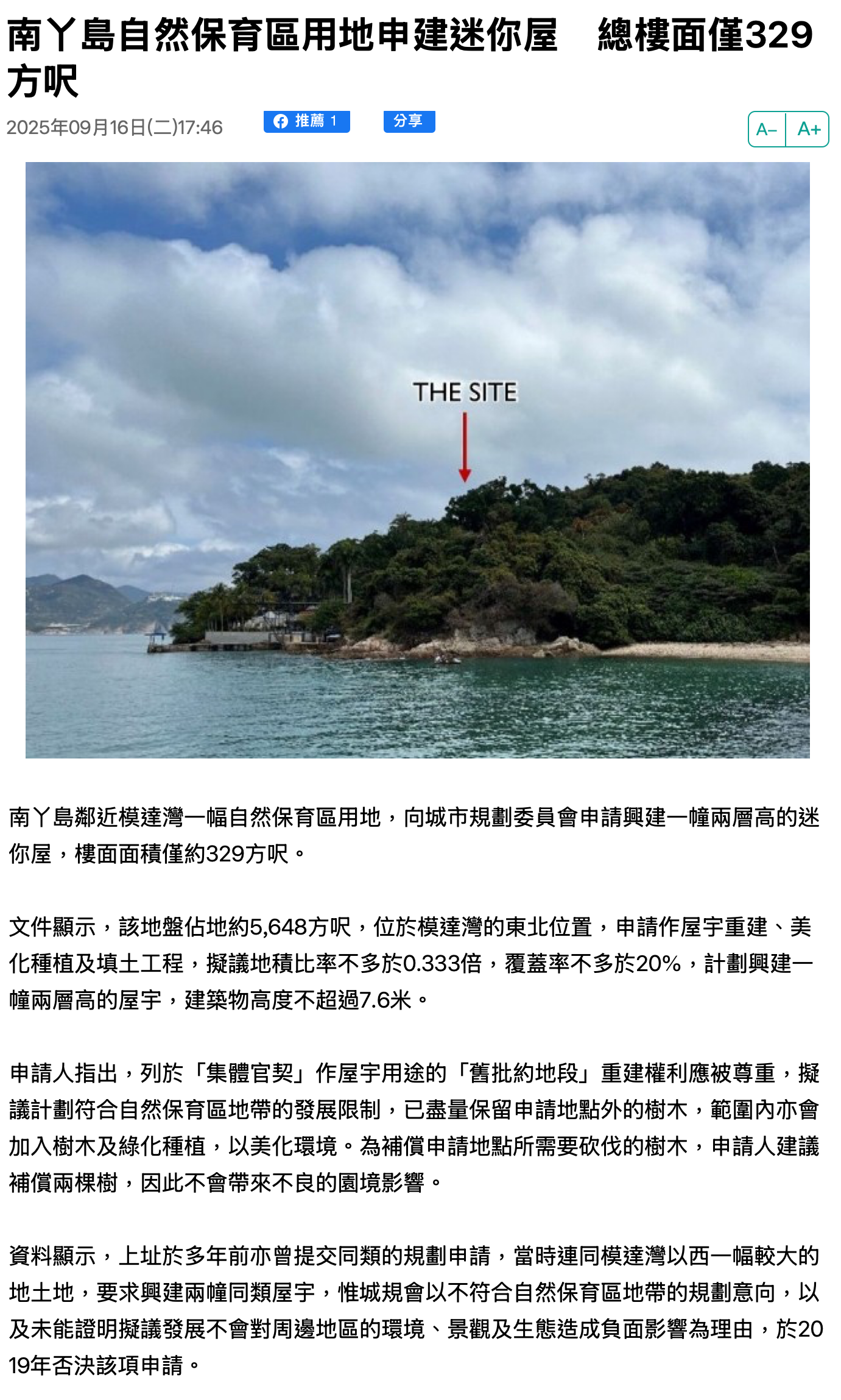 南丫岛自然保育区用地申建迷你屋 总楼面仅329方呎 on.cc东网 产经新闻 https://money18.on.cc/finnews/content/exp/bkn-20250916174632582-0916_00842_001.html