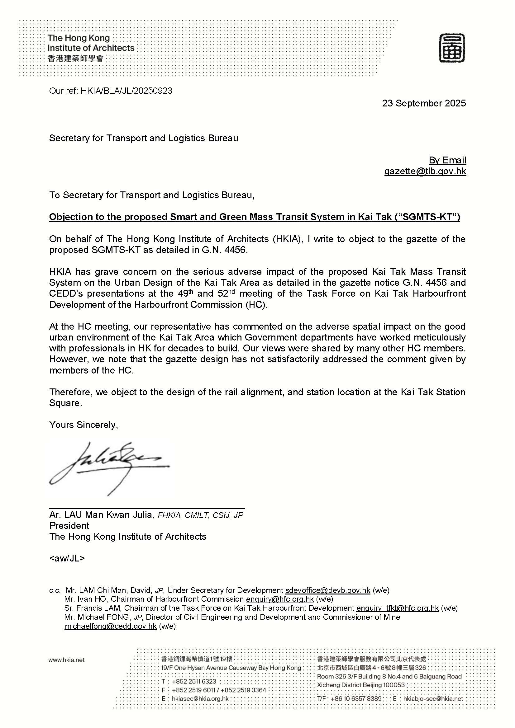 Objection to the proposed Smart and Green Mass Transit System in Kai Tak (“SGMTS-KT”)