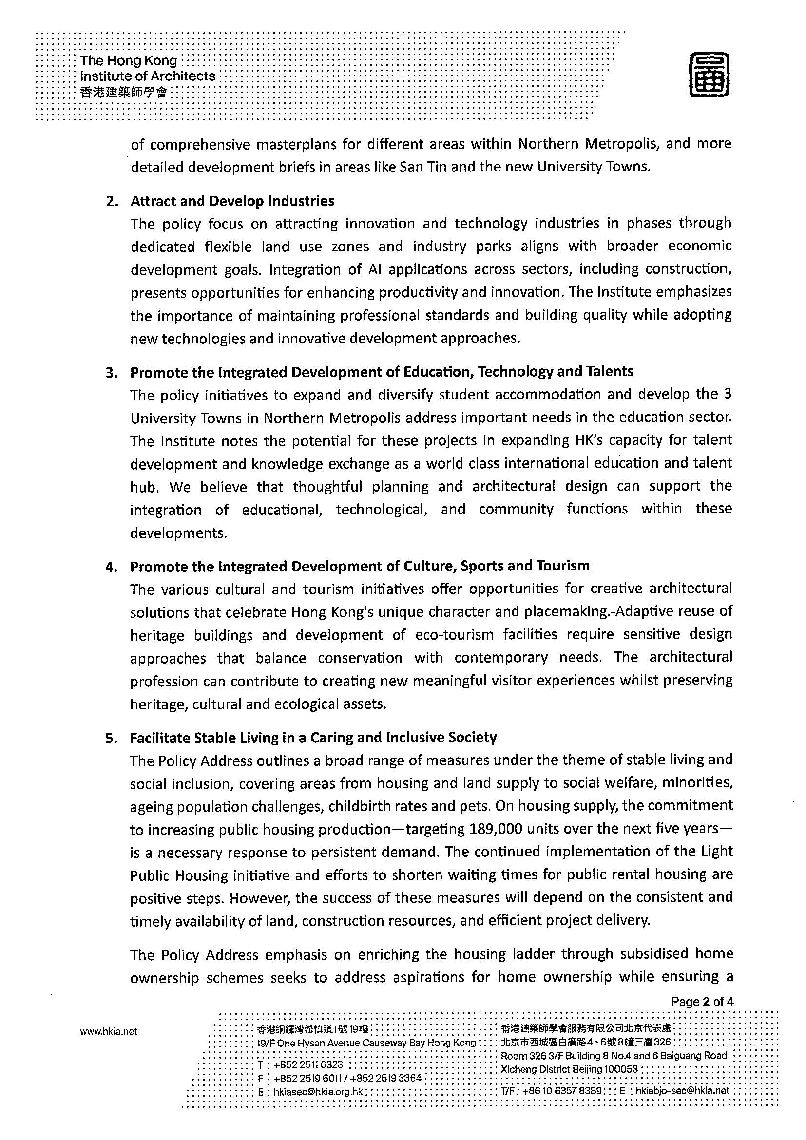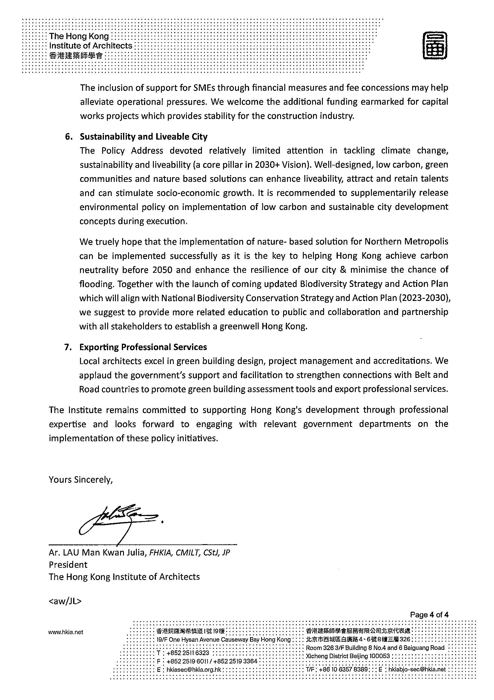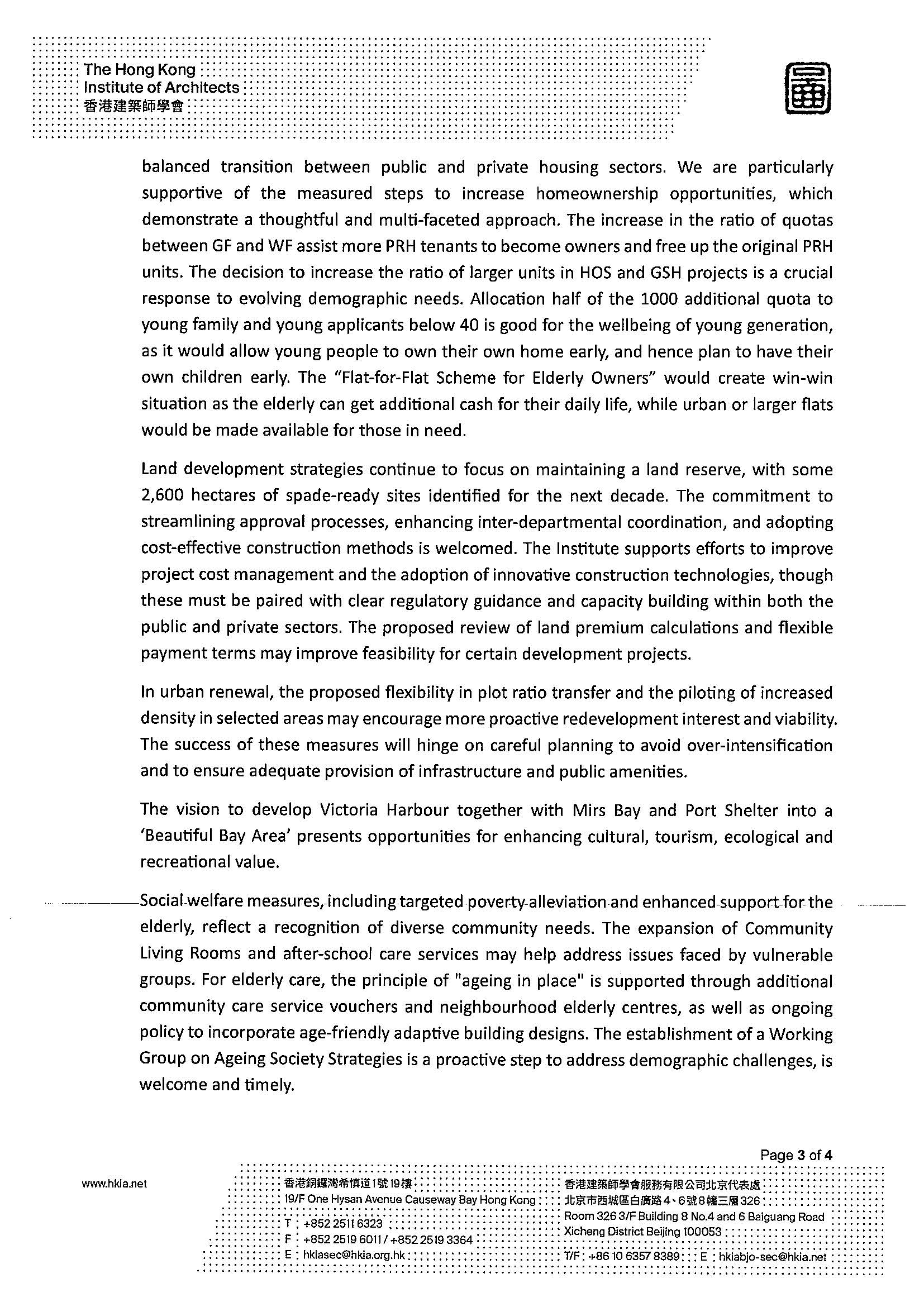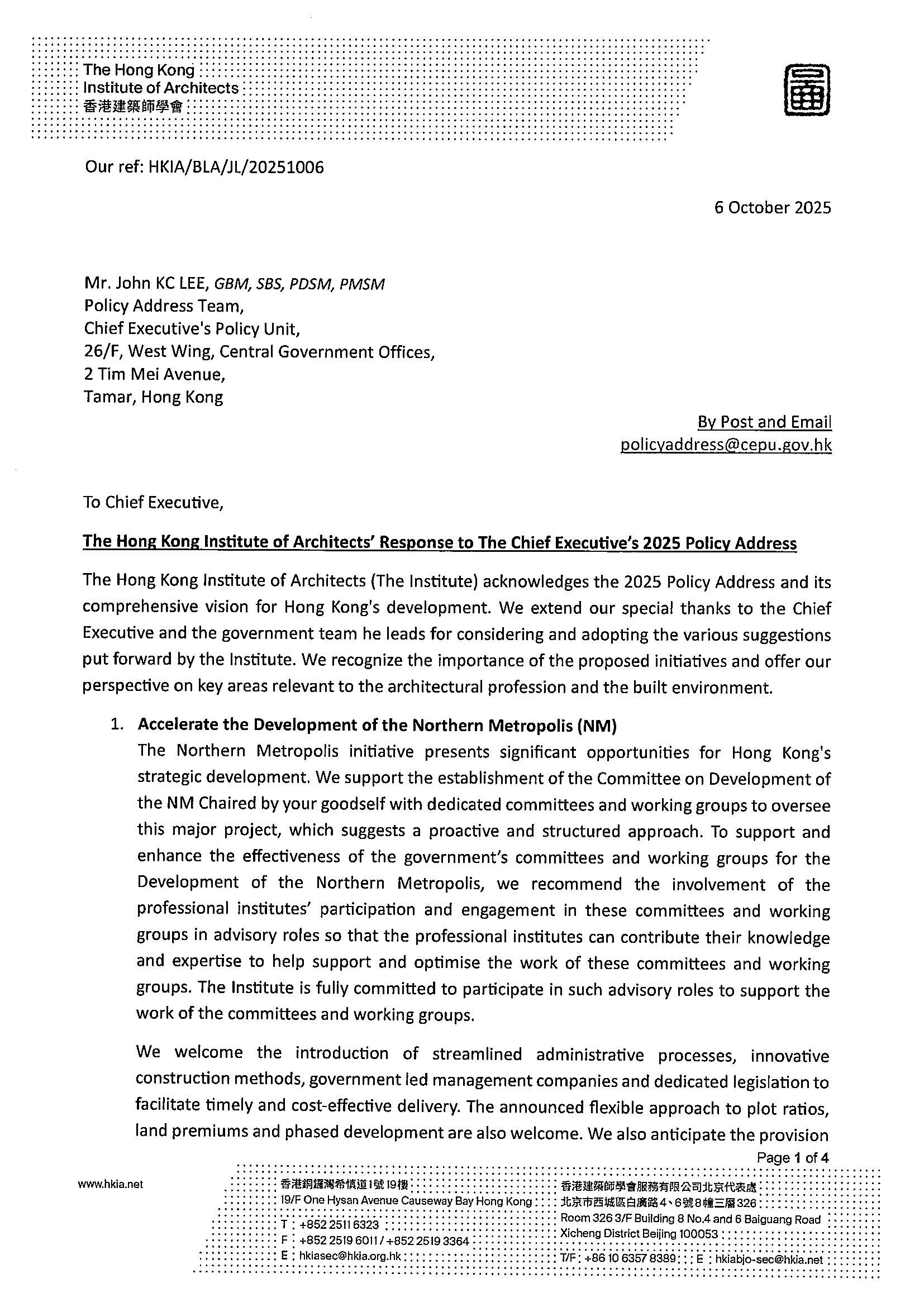 The Hong Kong Institute of Architects’ Response to The Chief Executive’s 2025 Policy Address