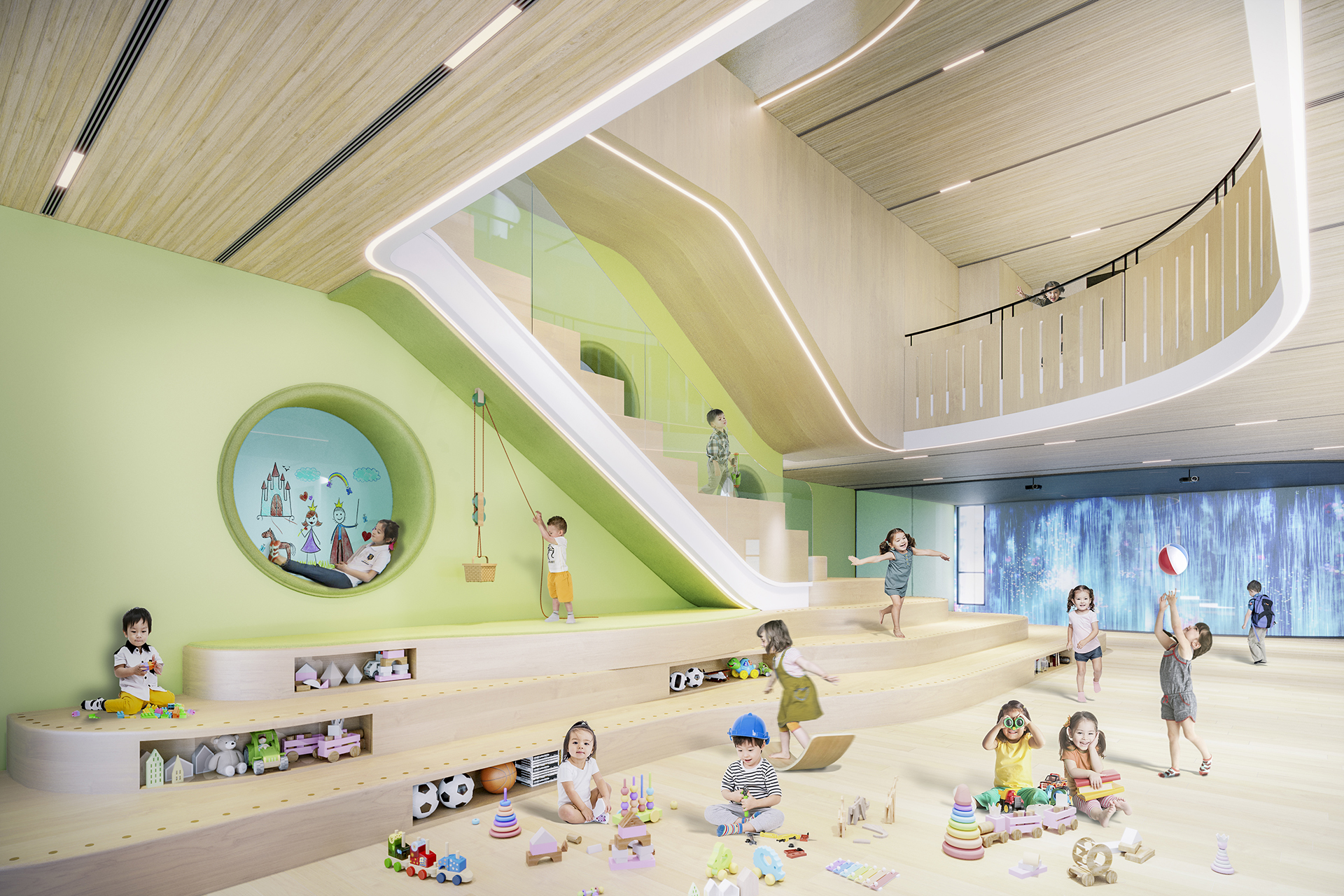 中心將提供不同空間及設施,包括户外學習空間;室內學習空間,如科學與大自然區、藝術區、健康與生活區、遊戲與探索區、自由遊樂區、探索區以及體能活動區;以及其他設施,如禮堂、培訓室和多用途場地等。