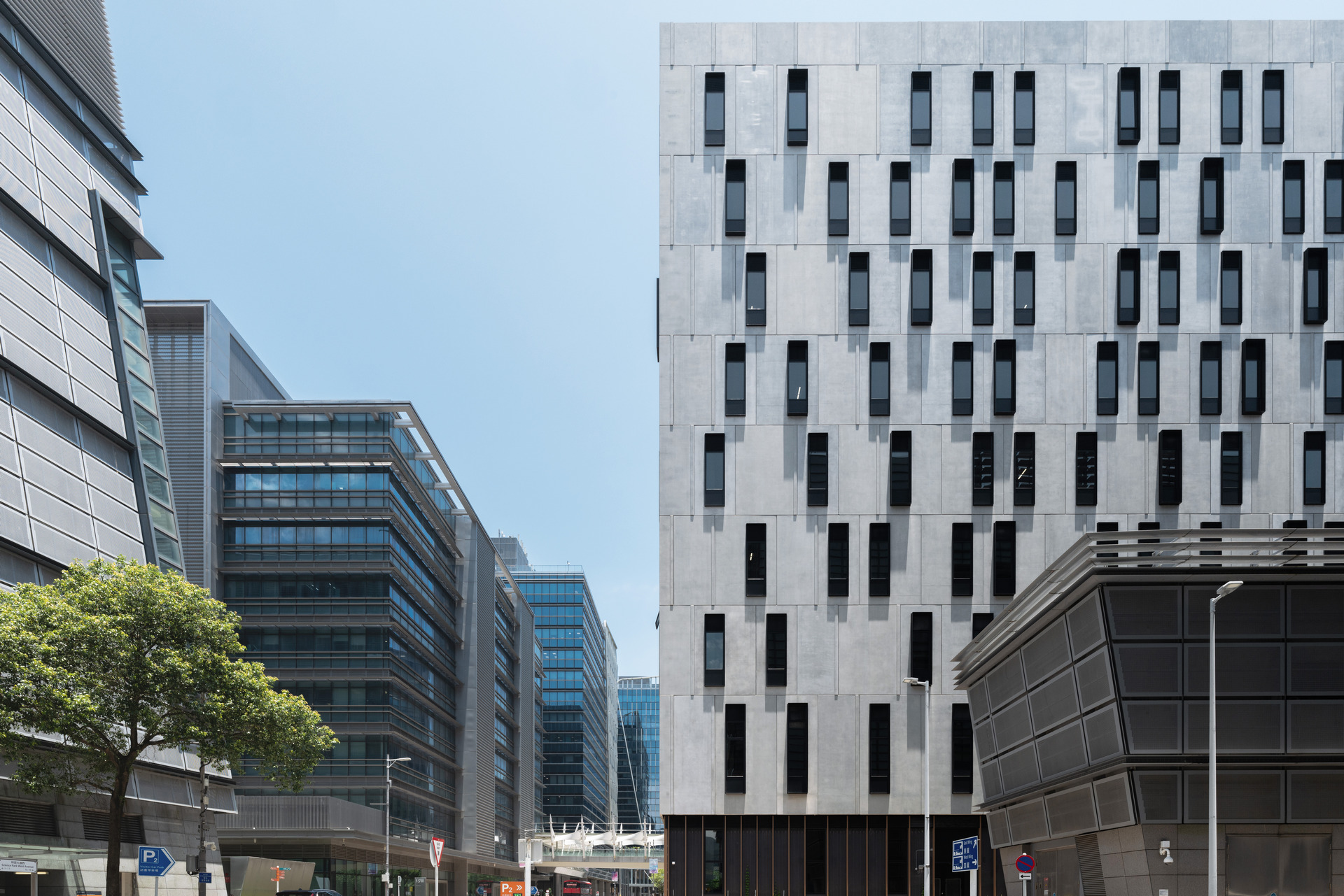 18W大樓是香港科學園內一座辦公綜合設施,設有符合工程及生物安全第三級標準的實驗室,且每層設有社交空間,體現人性化理念。開放式實驗室配合垂直管道系統,靈活應對未來發展。 獨特的混凝土外牆與園區玻璃幕牆建築和諧相融。高爐礦渣混凝土及預製面板可減少材料浪費,配合遮陽系統,有效降低能耗,實現可持續與實用的平衡。