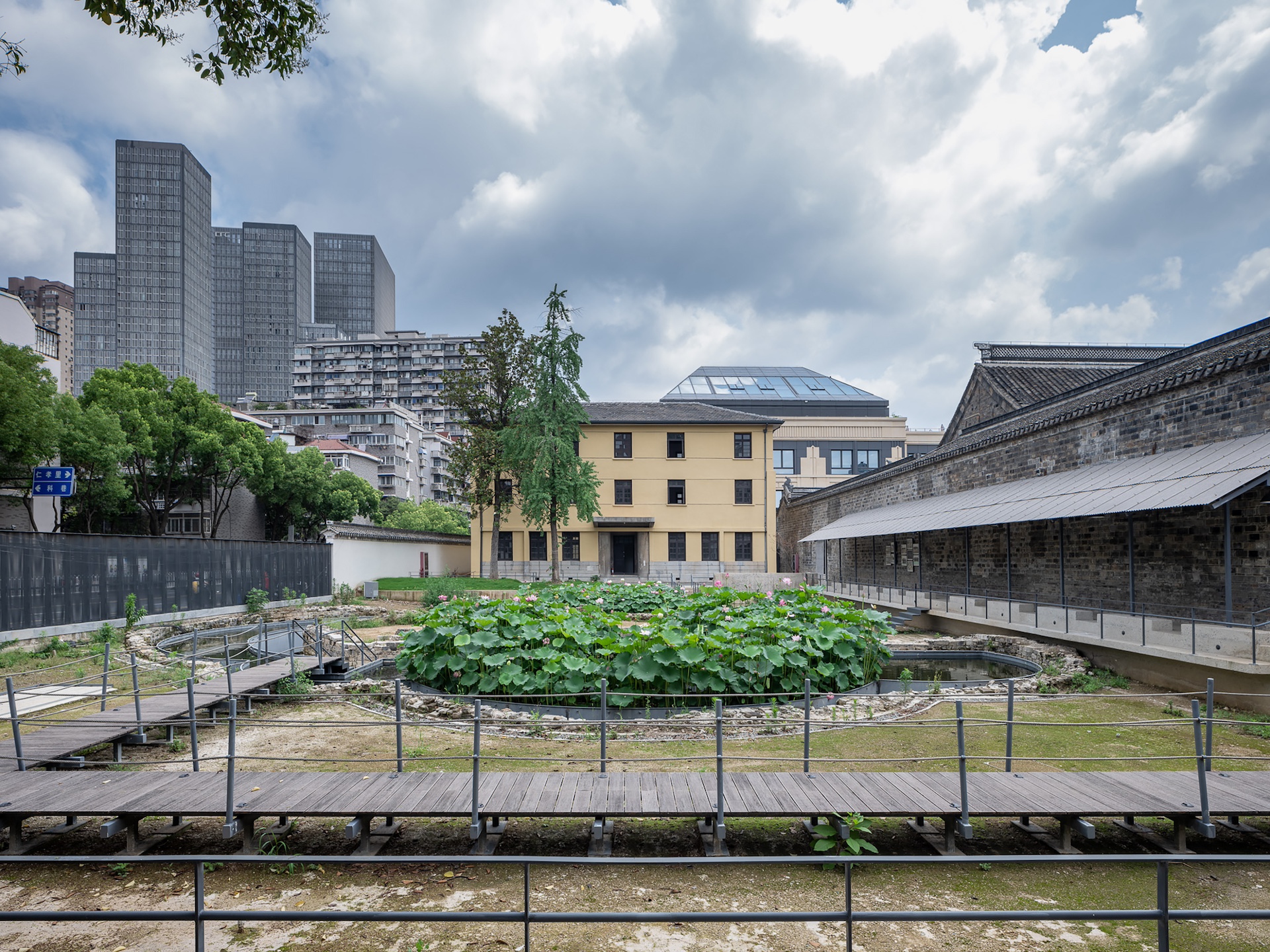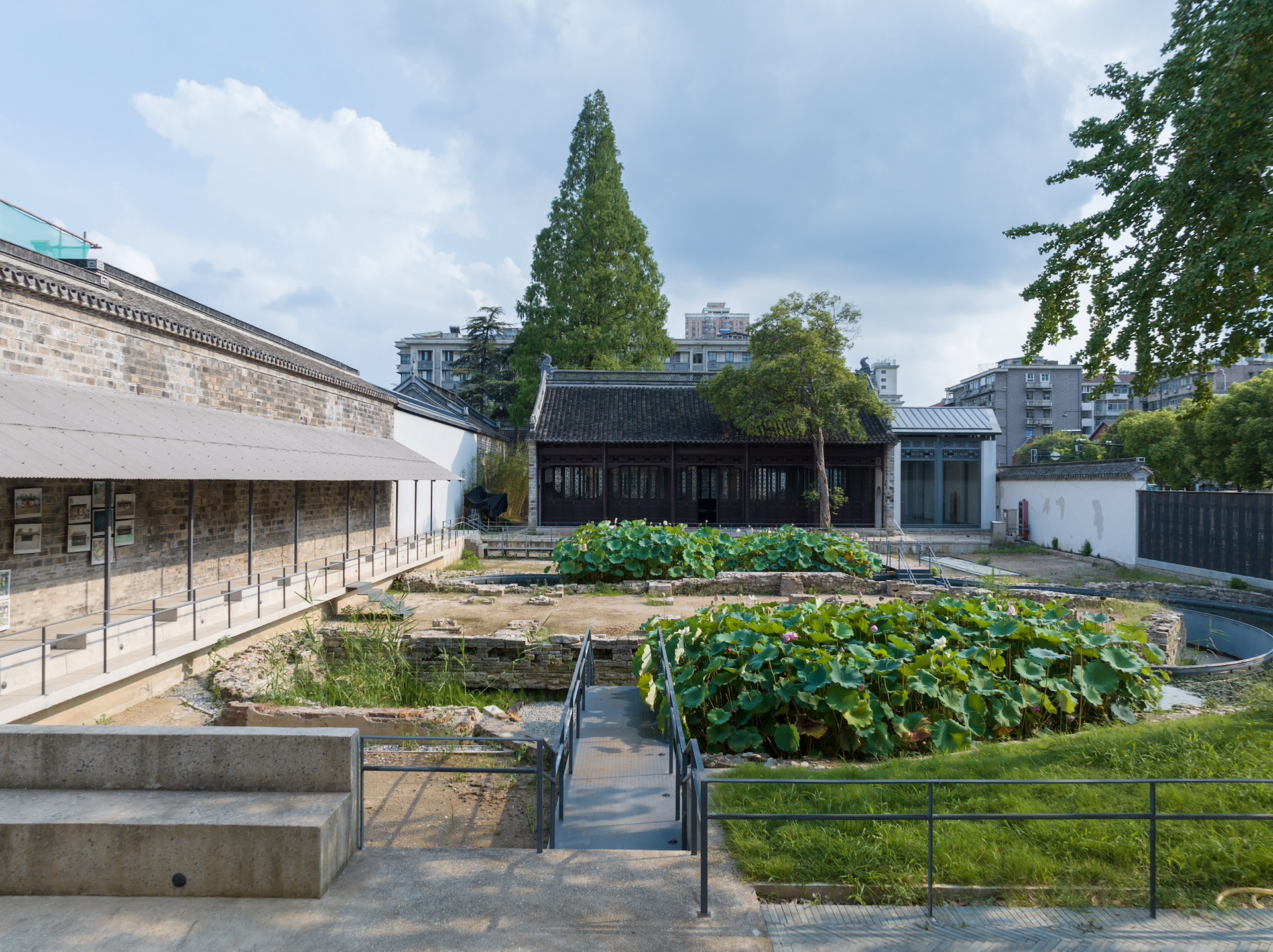 2018年,隨著李鴻章祠堂保護與展示項目的實施,南京文物部門於西側花園發現一處推測為民國建造的荷花池遺址。設計團隊在現場勘探後,制定了三個目標:保護、展示、體驗。設計通過在遺址中置入“鋼盆”低調介入,保護池壁的同時,既全面展示遺址的材料與做法,更恢復了荷花池盈盈芙蕖的往昔盛景,豐富體驗功能,順應歷史文脈。