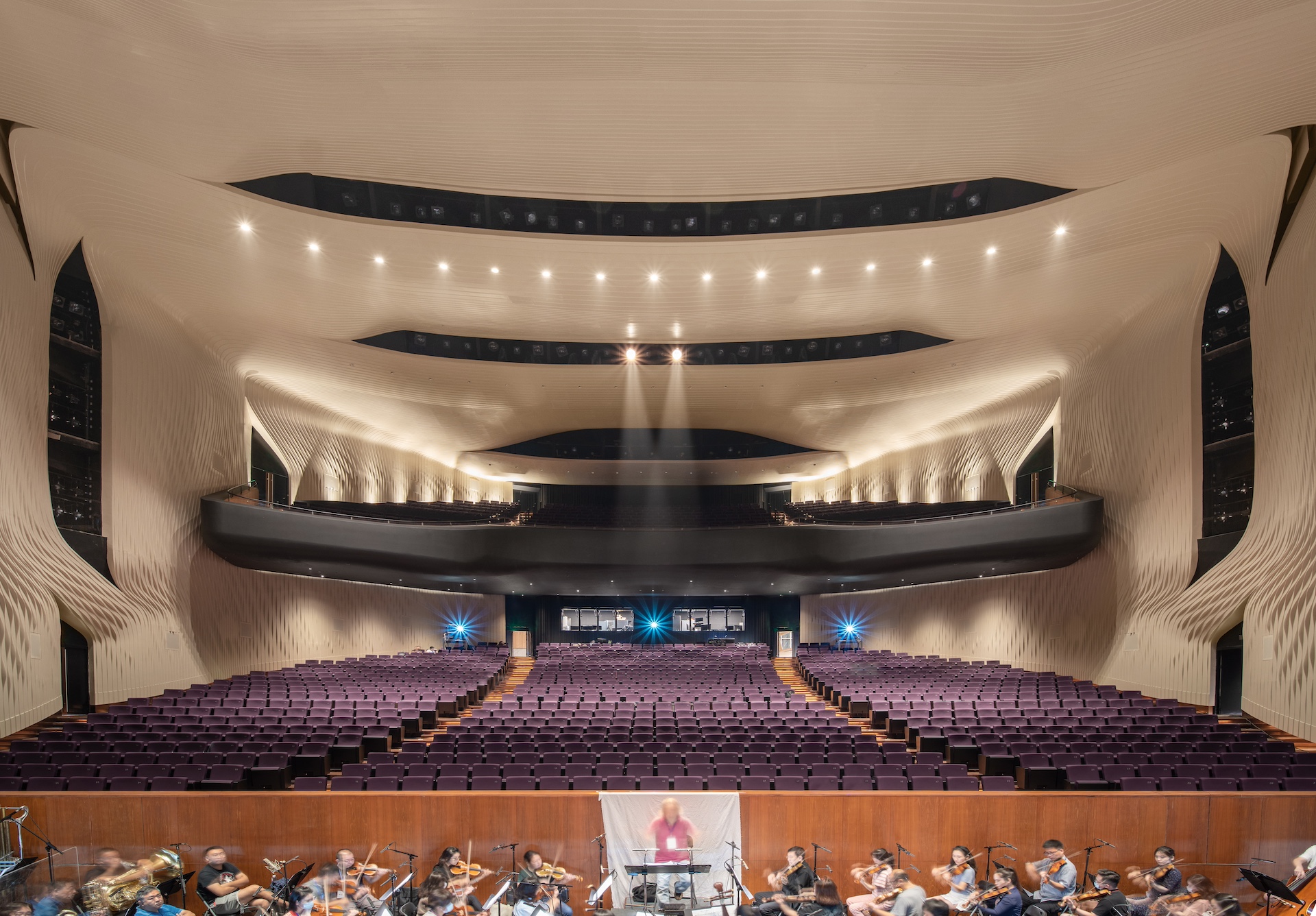項目用地俯瞰前海灣和南海,環境優美地理條件優越。演藝中心設有1500 座劇場和600 座多功能,能滿足大型歌劇、舞劇(含芭蕾舞劇)、大型交響樂和大型綜合文藝表演等演出的需要,同時兼顧會議活動、戲劇、話劇、舞會等多種功能要求,將是本地區的最高藝術表演中心,是弘揚高雅藝術、推動國際文化交流的藝術殿堂。