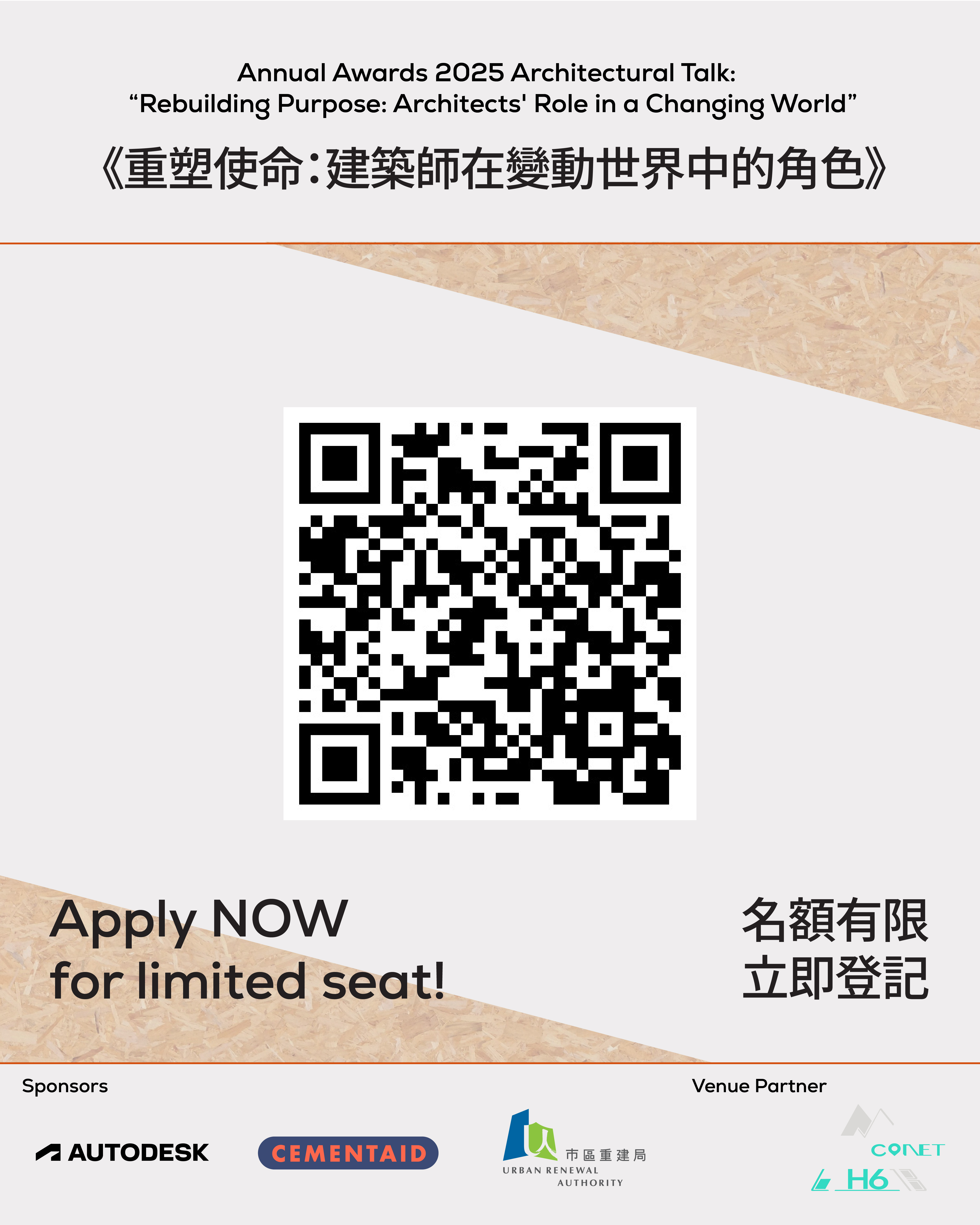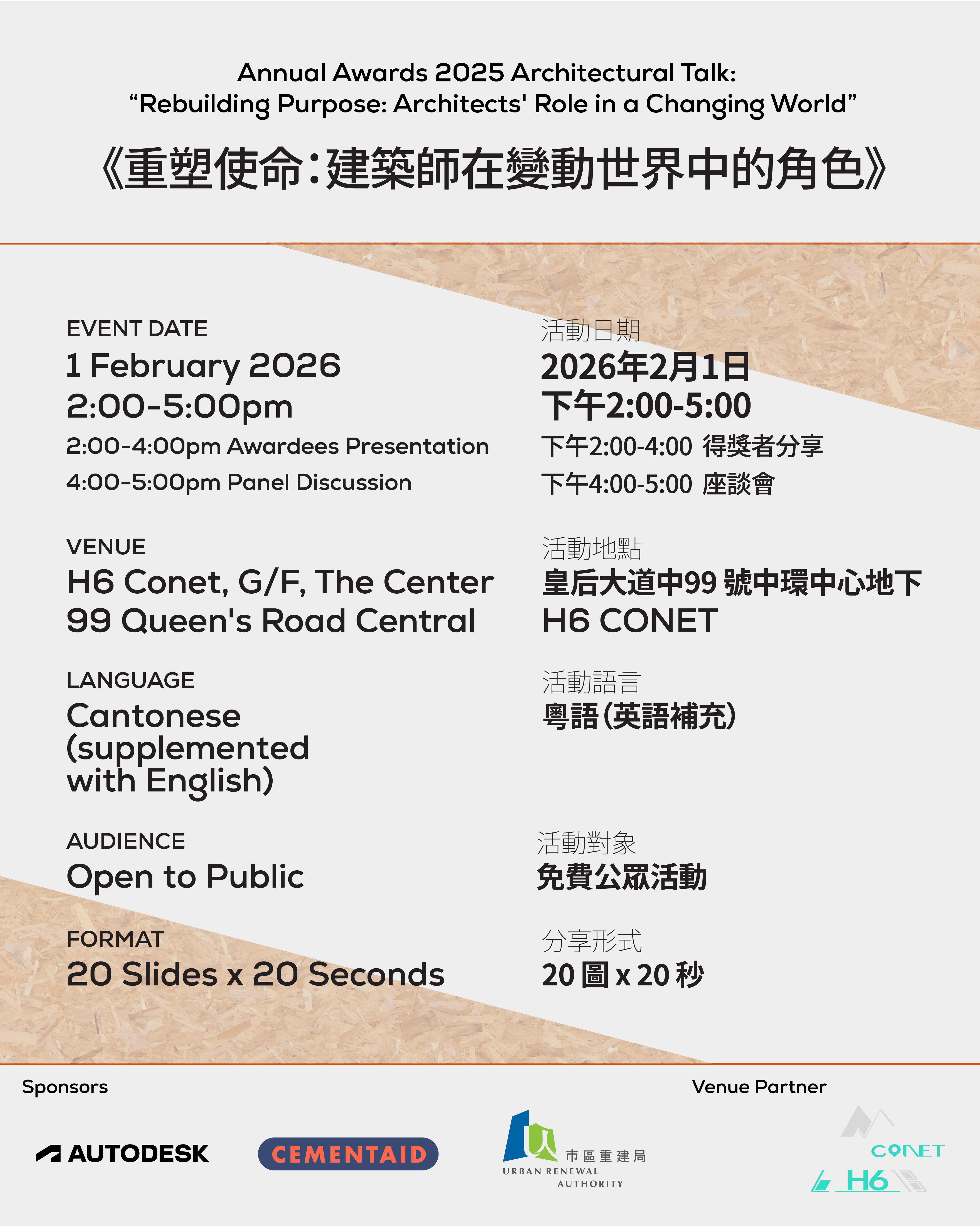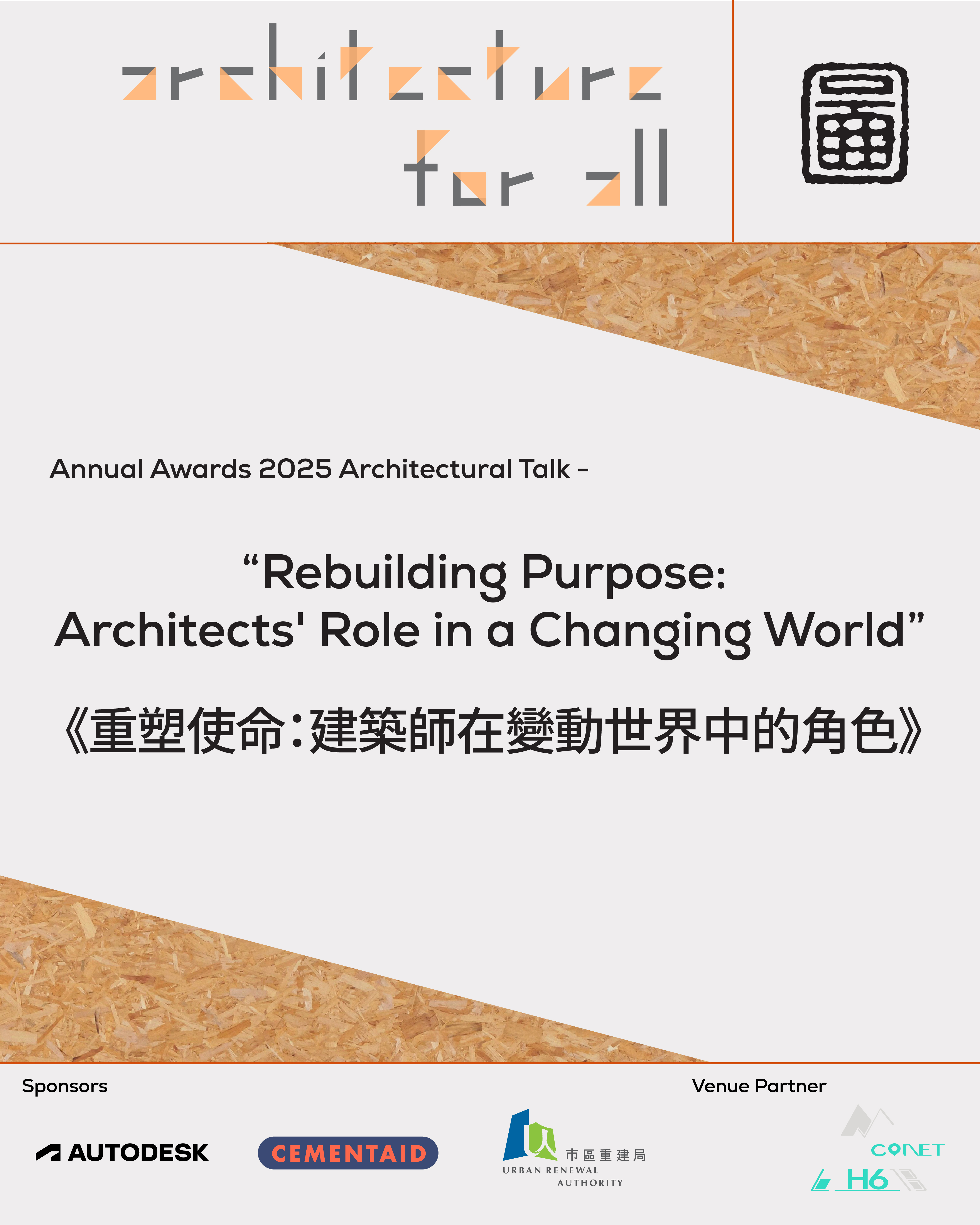 是次分享以「重塑使命:建築師在變動世界中的角色」為主題,將於 「香港建築師學會 2025 年度年獎展覽」 期間舉行,並免費開放予公眾參與。無論是建築迷、設計人,還是對城市生活充滿好奇的你,都歡迎來聽聽這些鮮為人知的創作背後,讓我們一起重新思考建築的價值與可能。