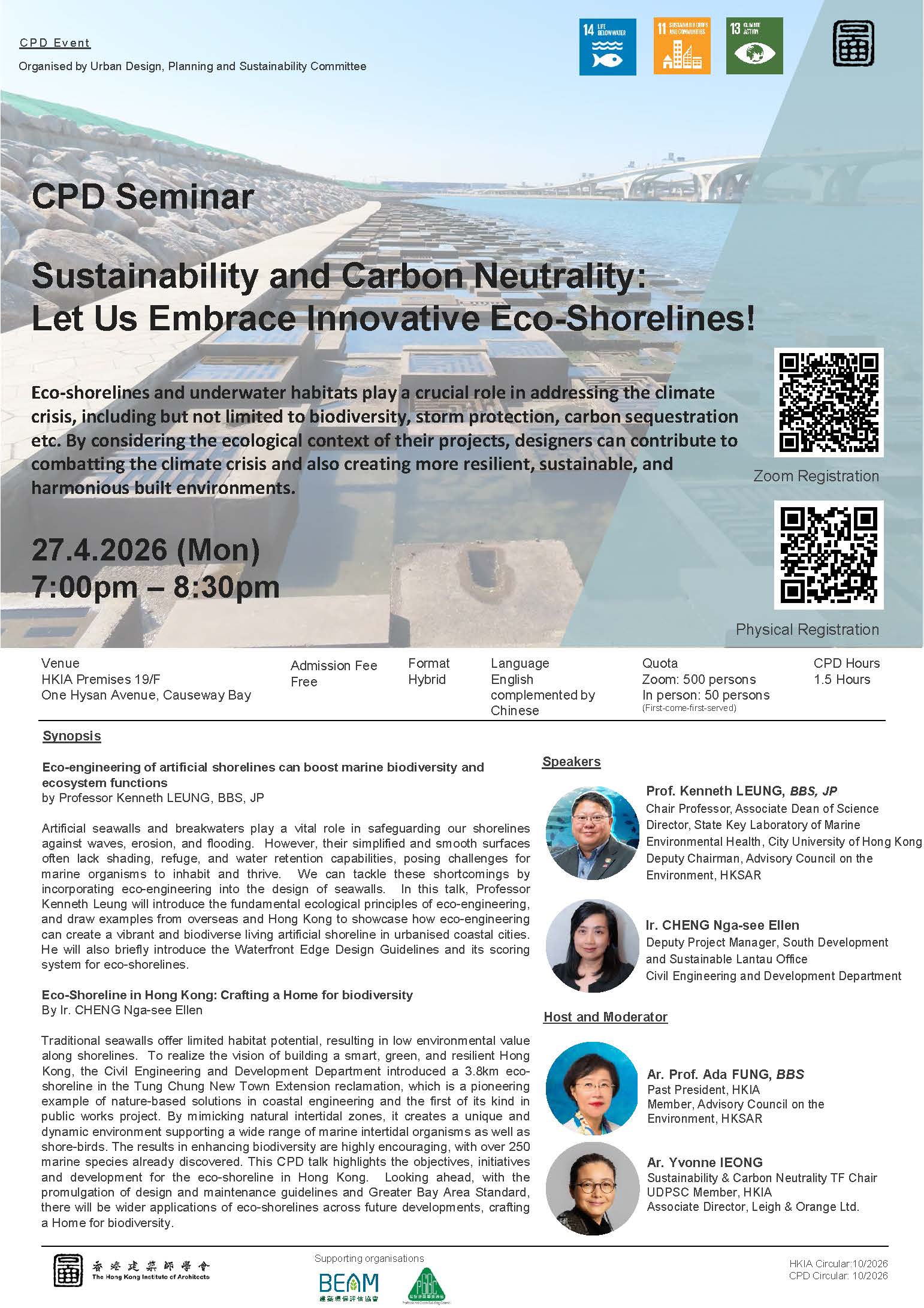CPD Seminar: Sustainability and Carbon Neutrality: Let Us Embrace Innovative Eco-Shorelines!