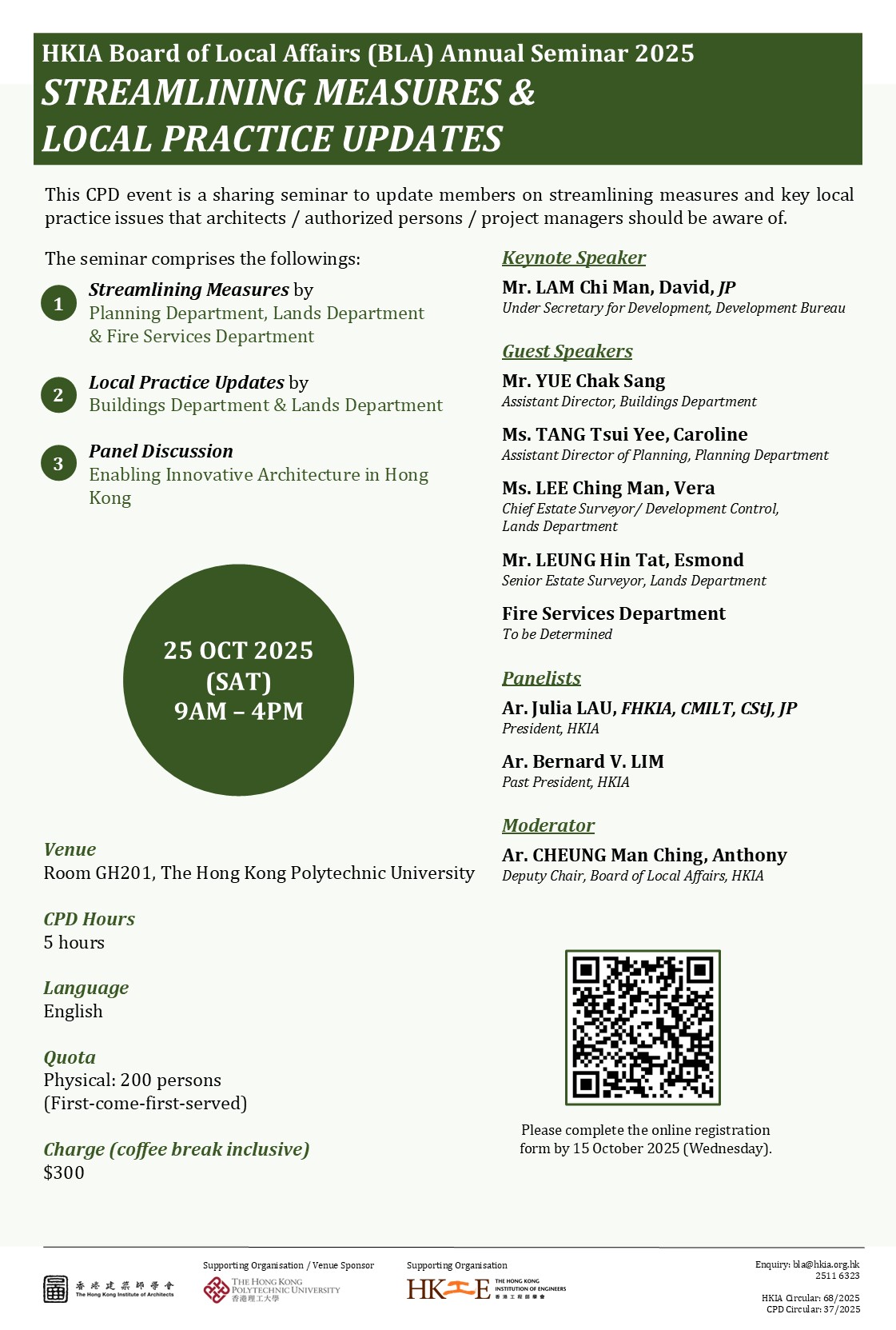 HKIA Board of Local Affairs (BLA) Annual Seminar 2025 - Streamlining Measures & Local Practice Updates