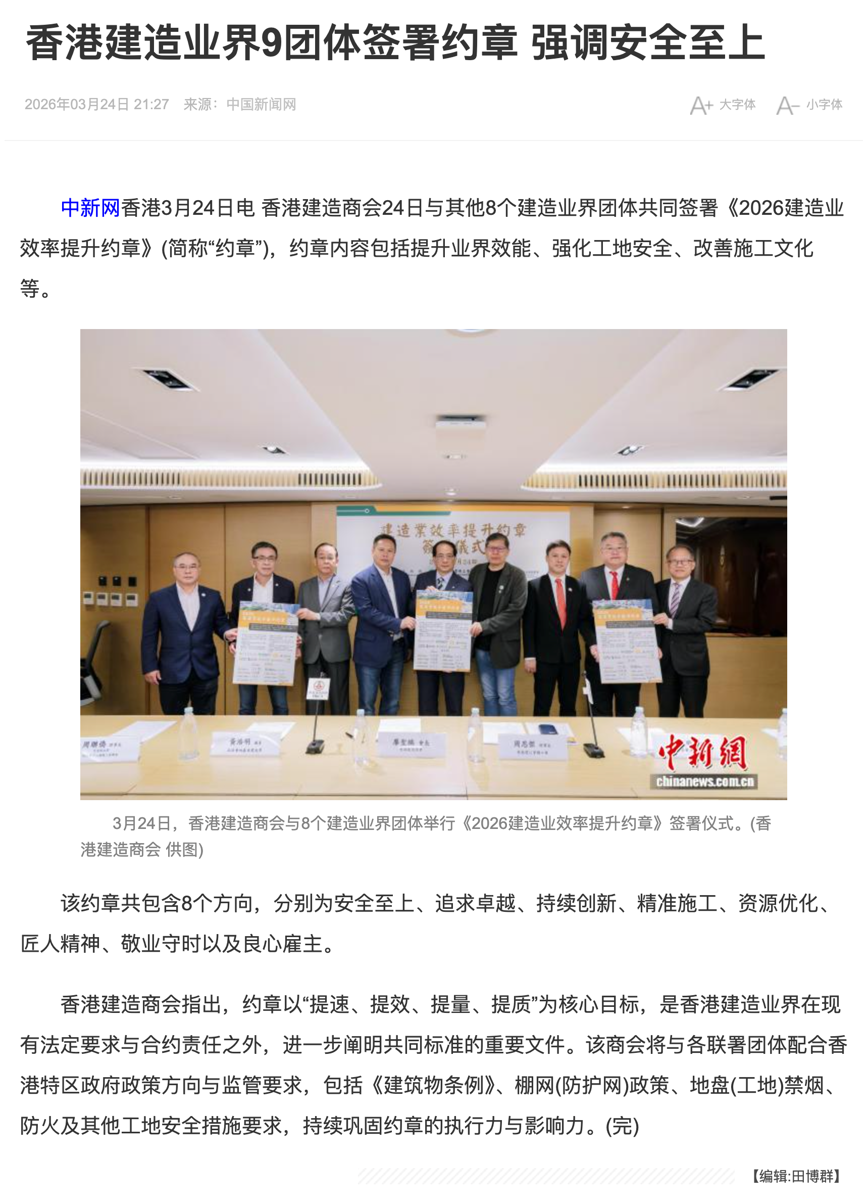 香港建造業9組簽約約章 強調安全至上