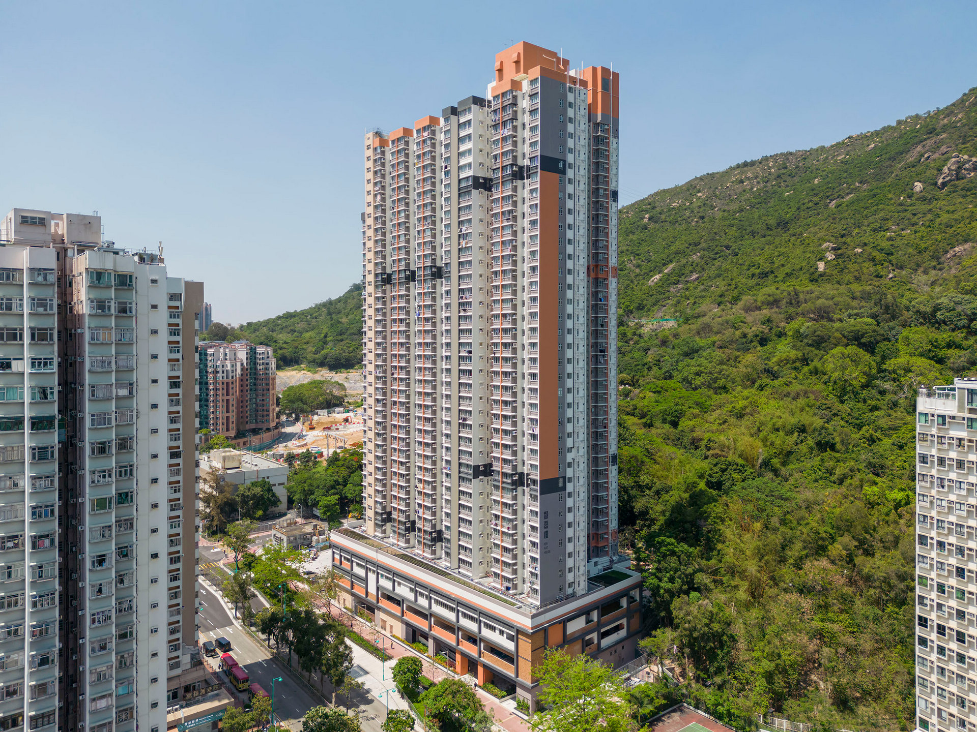 The estate features universal accessibility elements such as age-friendly corridors and fitness trails, green living initiatives like native plantings and central lawn areas, and urban connectivity through pedestrian-friendly art works arcades and multipurpose covered space. The design also pays homage to Tuen Mun's ceramic heritage through material choices and art installations while maintaining modern functionality.