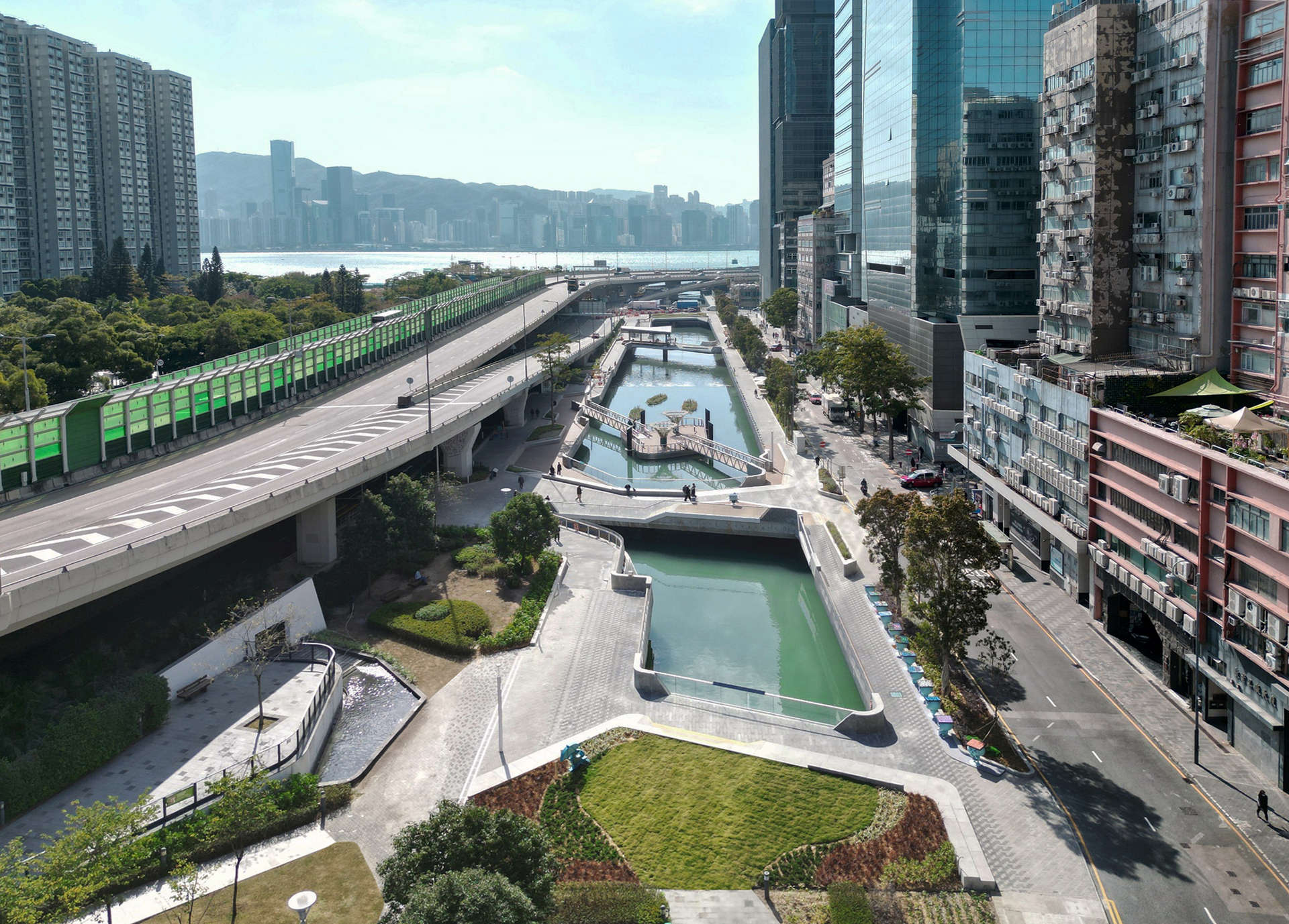 Revitalization of Tsui Ping River is a one-kilometer-long urban design project, transforming a drab and musty Kwun Tong nullah into an ecologically sustainable Tsui Ping River.