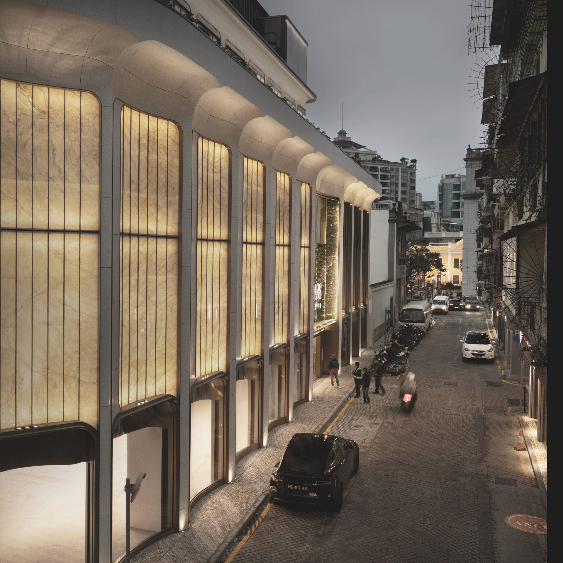 Nestled in Macau’s UNESCO-listed urban fabric, this revitalisation reimagines a historic post office dormitory into a nine-storey cultural quarter, harmonising colonial legacy with modern vibrancy. The design integrates retail, exhibitions, and dining within an open-plan layout, anchored by a sky garden and terraces that invite public interaction. Drawing inspiration from landmarks like the 1929 post office and Holy House of Mercy, the architecture employs terrazzo and translucent marble glass to bridge past and present. Classical pilaster rhythms and a sculptural arched entrance echo Senado Square’s heritage, fostering connectivity while conserving Macau’s intangible cultural narratives through light, materiality, and adaptive placemaking.