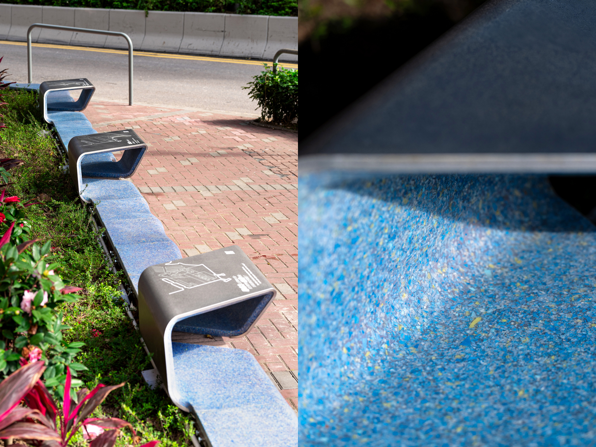 Crafted from 9,200 surgical masks and 150 medical gowns, locally collected PPE waste is upcycled into durable outdoor furniture. The co-created installation serves as a communal hub for rest, socializing, and reflection, while solar panels provide clean energy to light the space at night. Modular and prefabricated components can be repurposed into chairs, extending its lifecycle and promoting material sustainability.