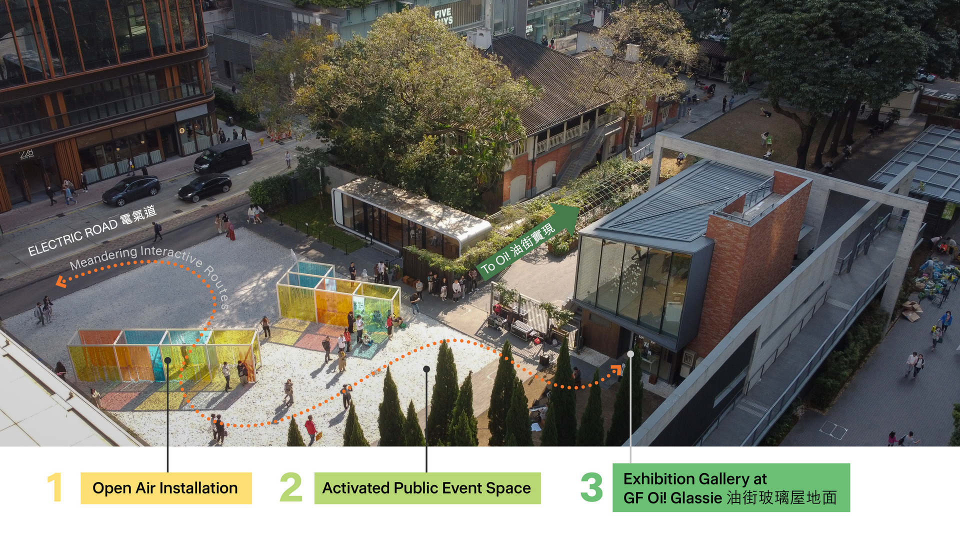 Complementing the gallery is an outdoor color playscape by Tiffanie Tseng, which transformed the plaza into an immersive space where light, shadows, and vibrant hues invite community interaction. Over two months, the project attracted 12000 visitors, offering workshops, music performances, and dialogues to engage diverse audiences. By merging art, architecture, and public life, Vita in Movimento—"Life in Motion"—celebrates the hidden beauty of everyday environments, fostering creativity and connection in North Point’s bustling neighbourhood.