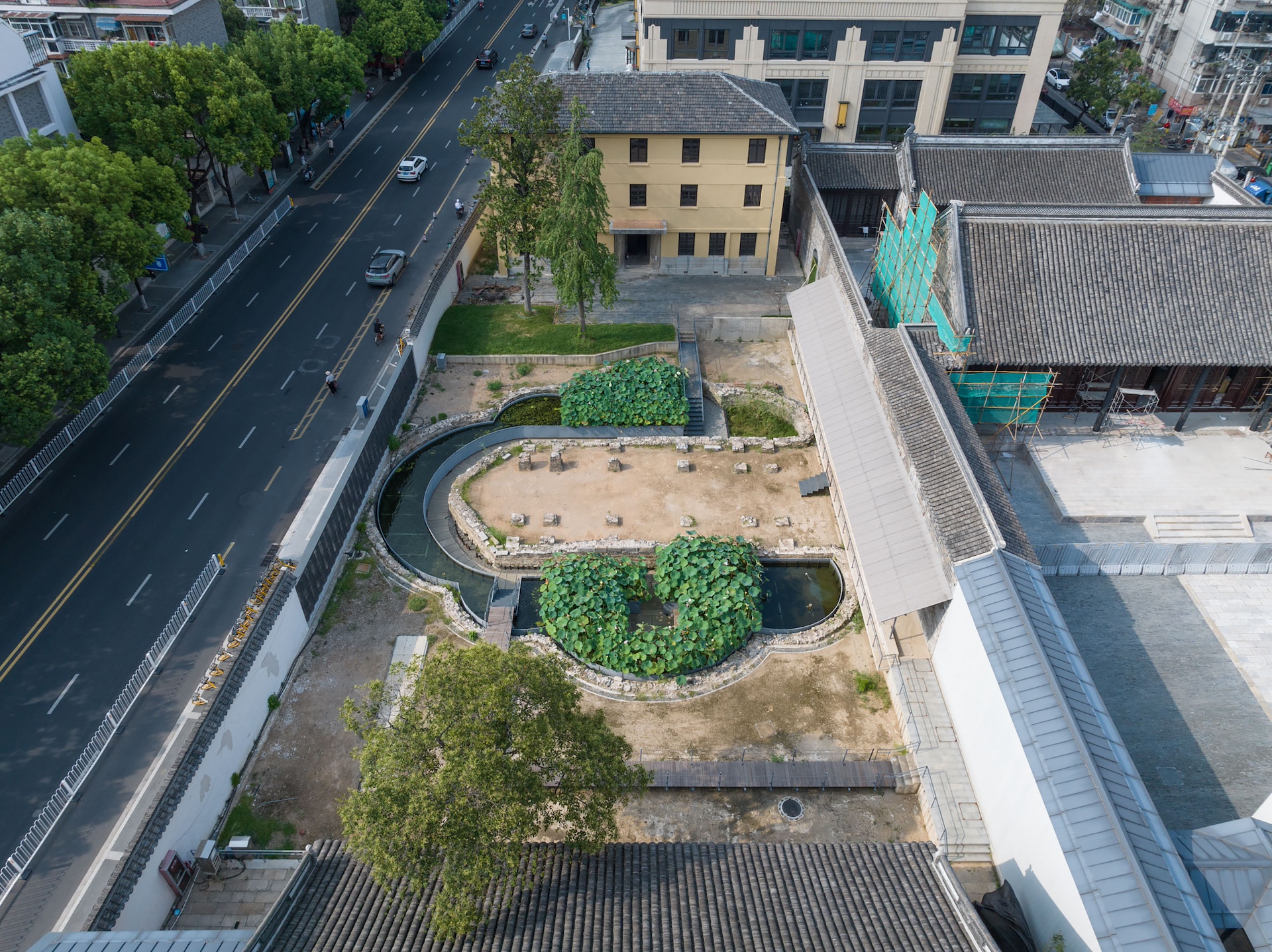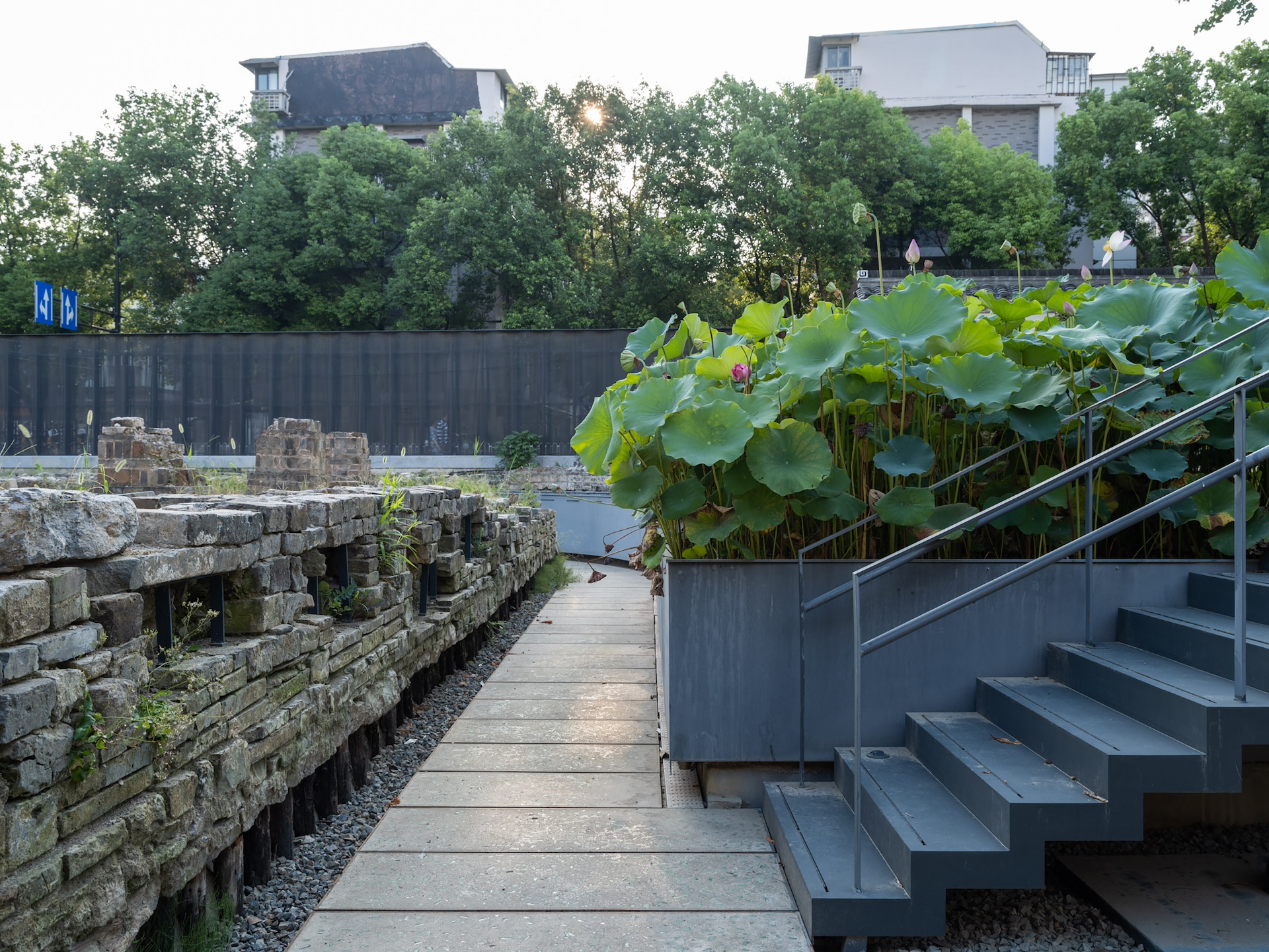 In 2018, as part of the Li Hongzhang Memorial Hall Conservation and Exhibition Project, the Nanjing Cultural Heritage Department discovered the remnants of a lotus pond, believed to be constructed during the Republic of China era, while refurbishing the western garden. The design team was commissioned to achieve three objectives after surveying the site: to protect, display, and enhance the experiential value of the ruins.The design strategy involved placing a "steel basin" within the ruins to protect the pool walls while comprehensively showcasing the materials and techniques used in the original construction, and simultaneously restoring the pond to its former glory filled with blooming lotuses, enriching the interactive experience of the site, respecting the historical context of the ruins.
