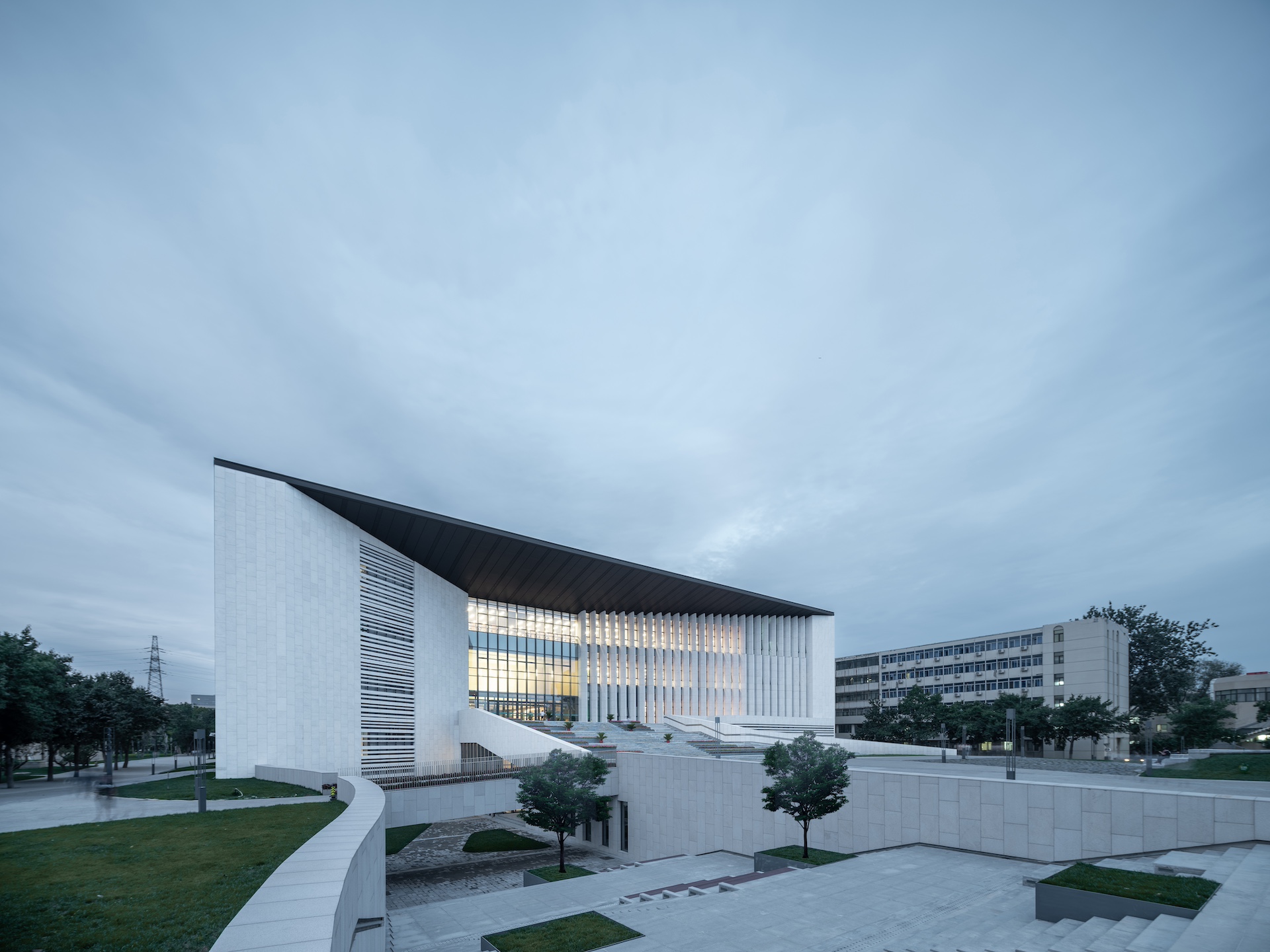 In the overall planning of the campus, the Library of Beijing University of Technology is at the center of the north-south axis. To strengthen the relationship and spatial sequence of the whole campus axis and reshape the campus etiquette axis, the rebuilt and expanded library will become an important node of campus fusion and intersection, providing a platform for communication between teachers and students. We prioritize sustainable development by thoroughly analyzing existing buildings, actively utilizing them, incorporating green technologies, and planning for future growth. Inspired by bamboo slips, we abstract its texture to form a dynamic facade form, produce rich light and shadow effects, and enhance the cultural connotation of architecture.