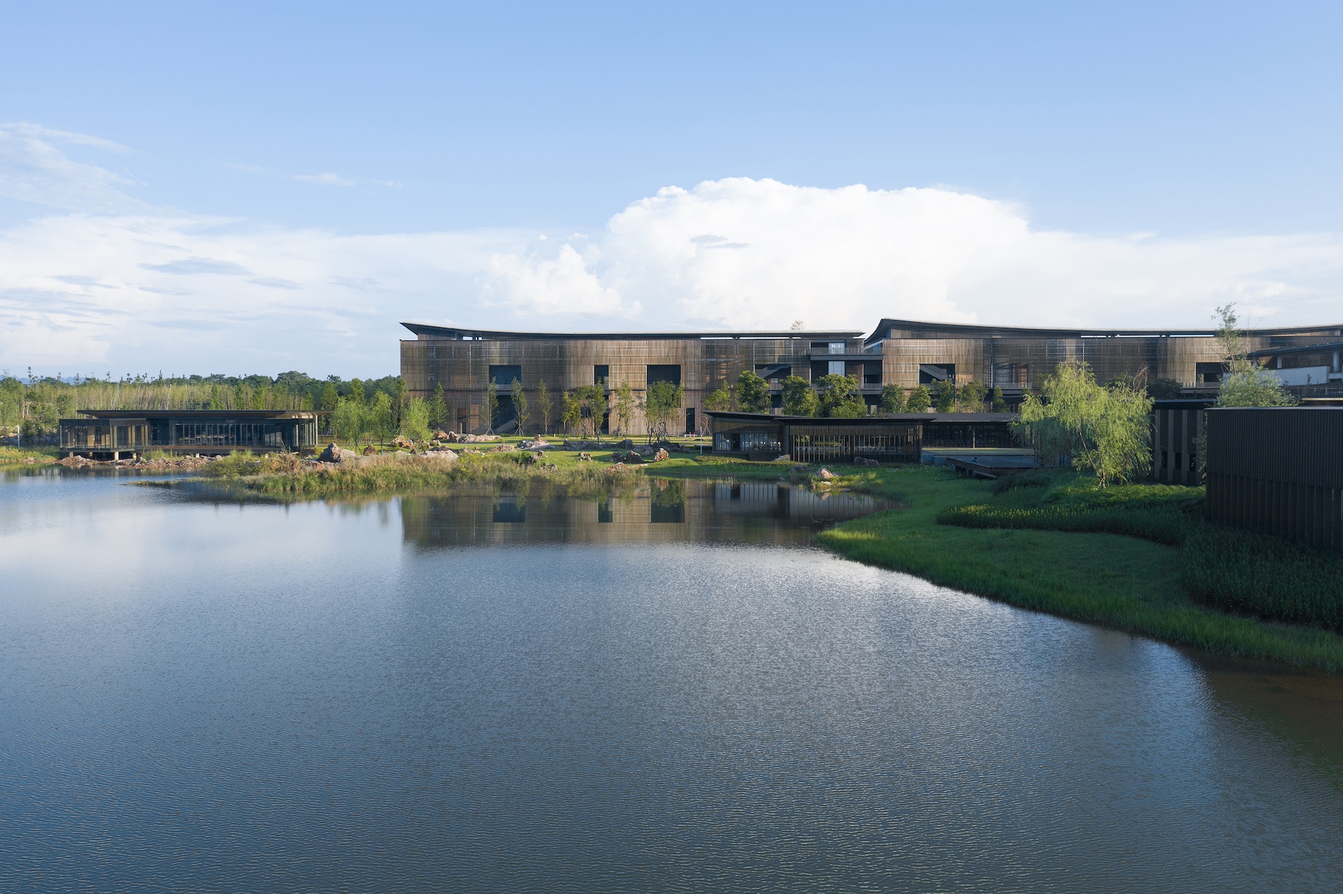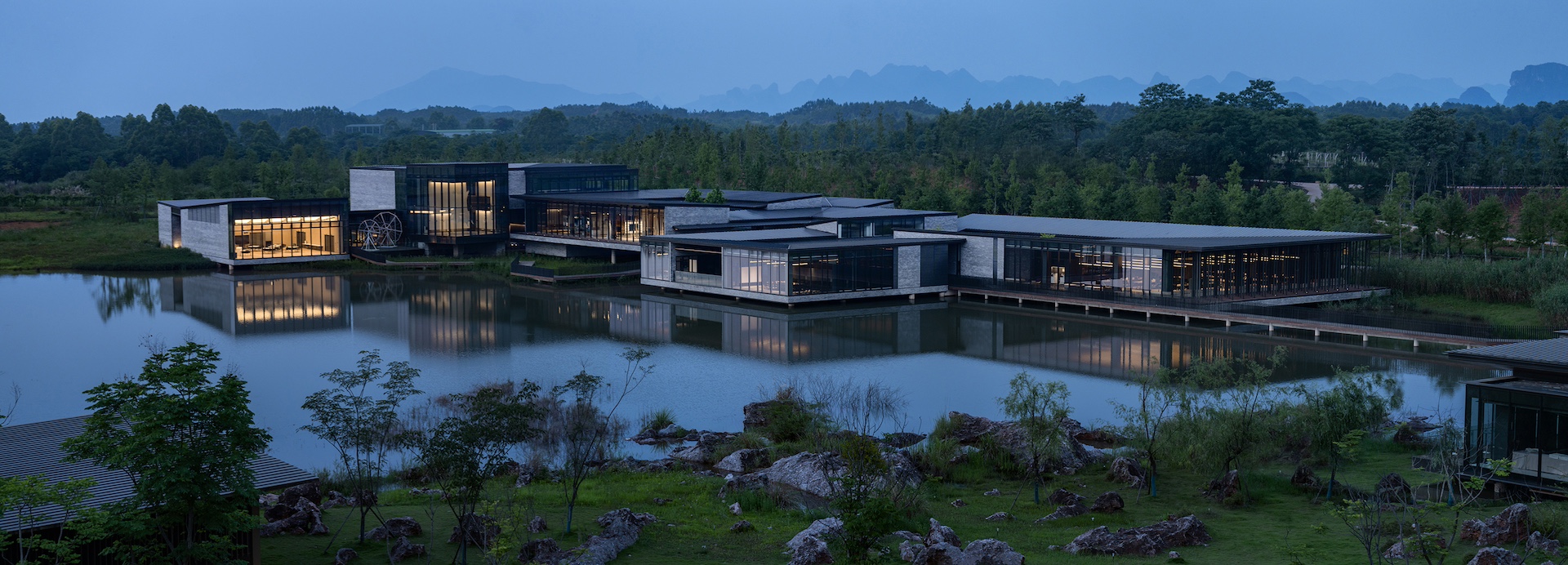 Integral is an expansive, state-of-the-art spinning and garment manufacturing facility located in Guilin China, developed on rehabilitated wetlands that were once damaged by an old brick factory. Integral's "eco-industrial park" design intricately weaves architectural elements into the restored natural landscape, mirroring the region's interplay of water and hills, reflections, layers, colours, and textures. Drawing on local cultural and material influences, the project sets a benchmark for green architecture in terms of its prioritisation of healthy communities, smart manufacturing, ecological restoration, sustainable development, and a goal of zero carbon emissions.