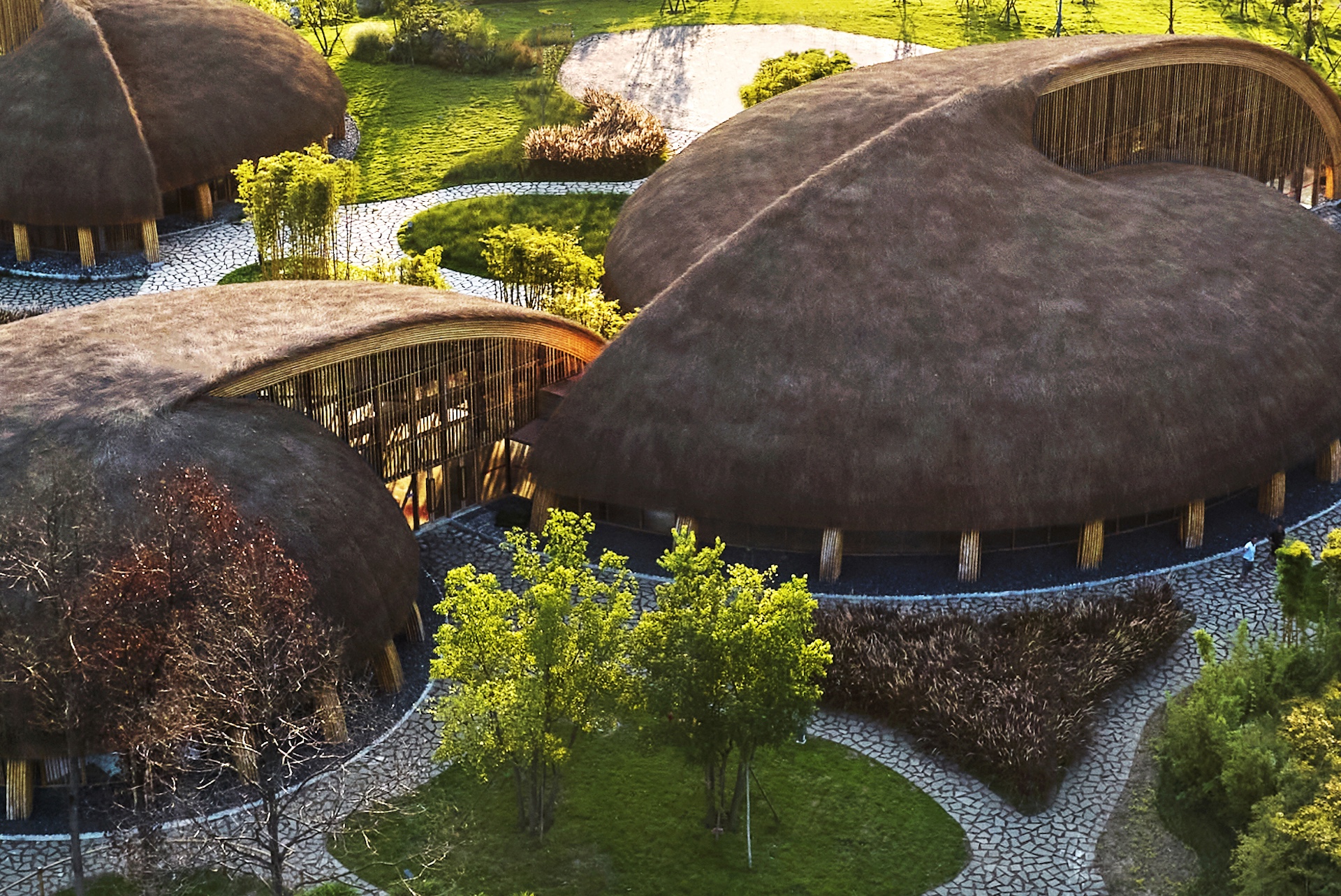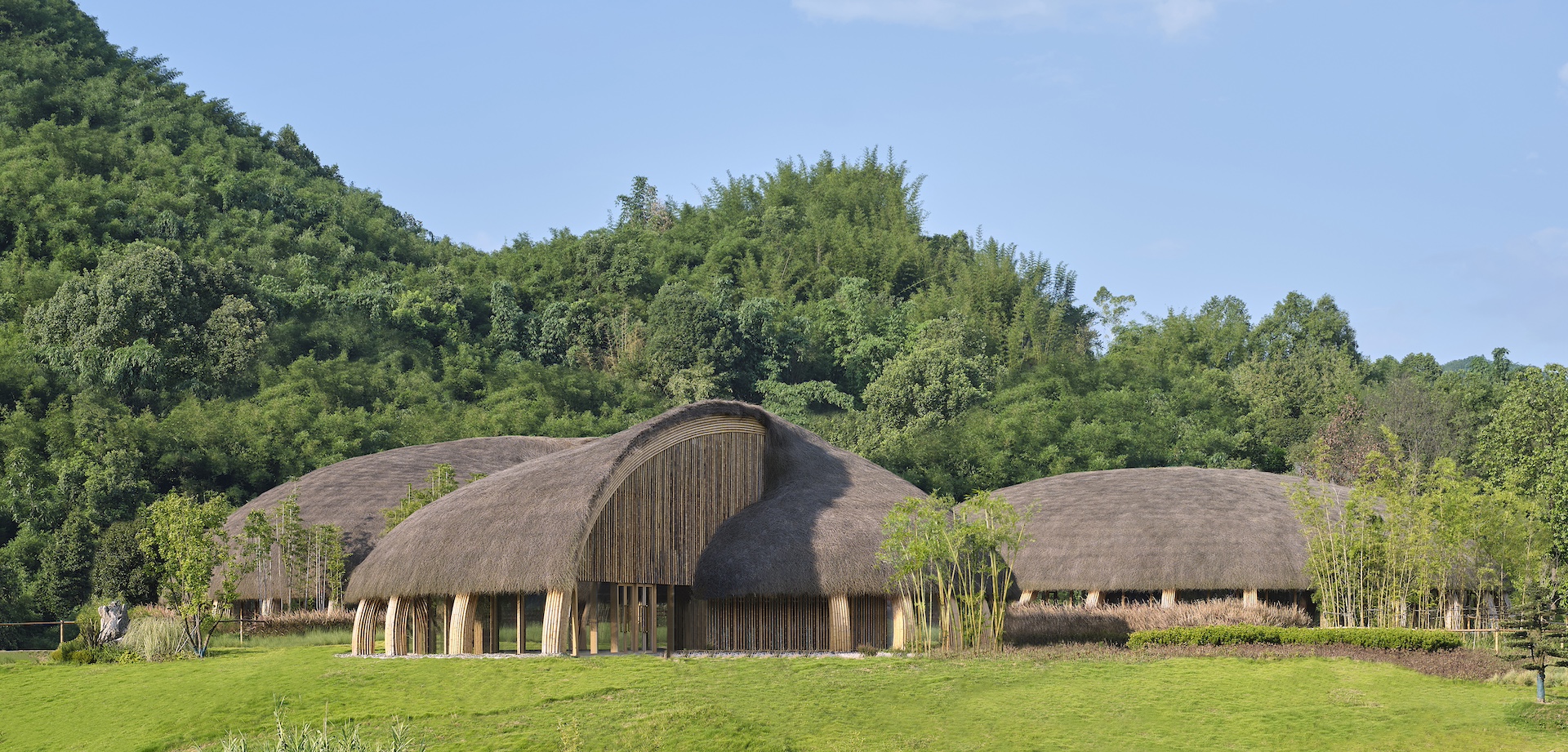 Located in Changning, Sichuan, the Bamboo Culture Center takes the true expression of the physical properties of bamboo as its form logic, showing the aesthetics of bamboo culture. Making full use of the strong tenacity of bamboo, the arch bound by the raw bamboo forms the basic structural unit. Following the natural logic of spiral growth, space is overlapped and nested into three double spiral entities, which are turned into an exhibition hall, a multi-functional hall and a tea room,providing a an authentic space in public scale, seeking the return of natural and traditional aesthetic values while meeting the requirements of modern space use well.