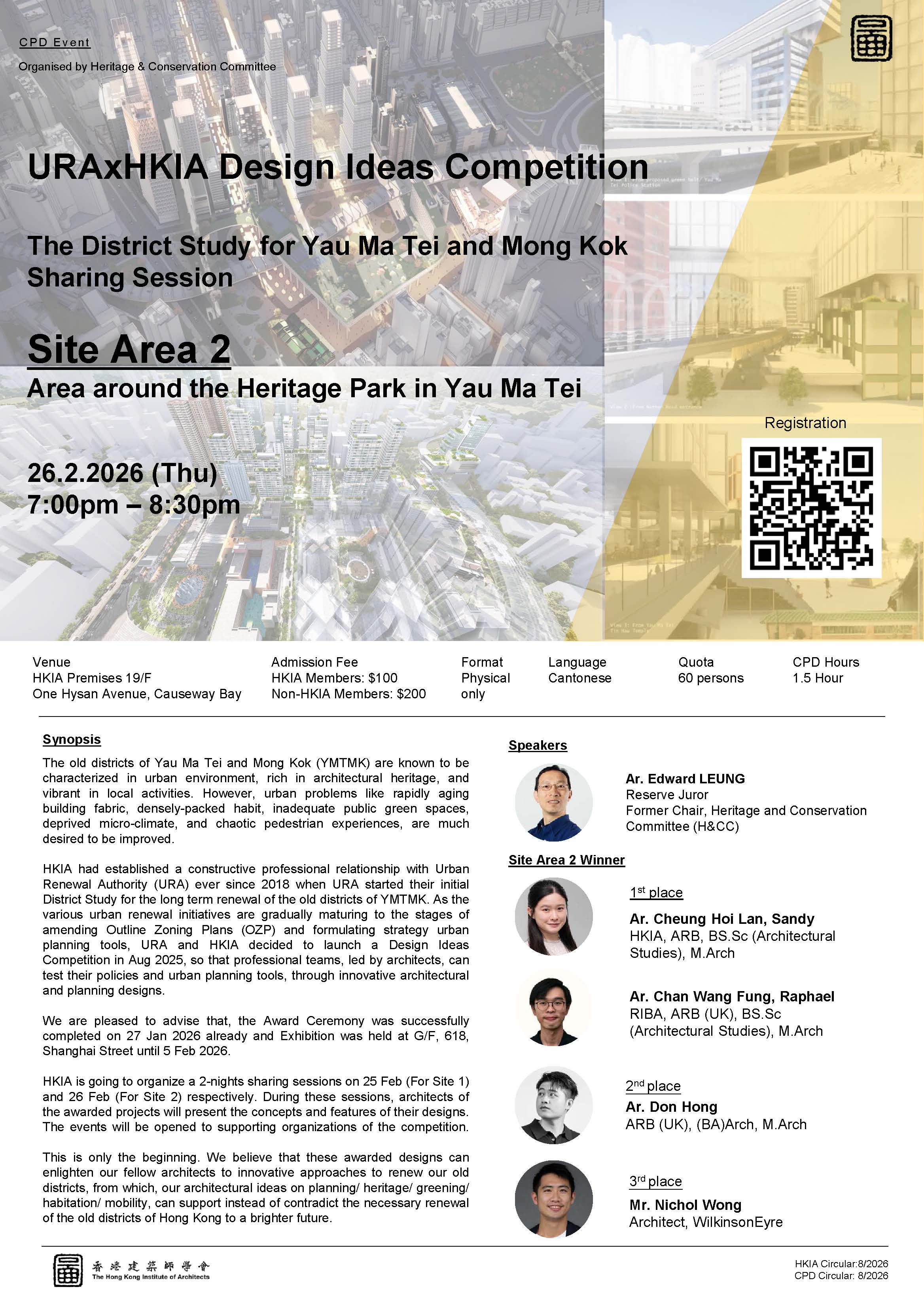 Organiser: The Hong Kong Institute of Architects (HKIA) Heritage and Conservation Committee (H&CC)