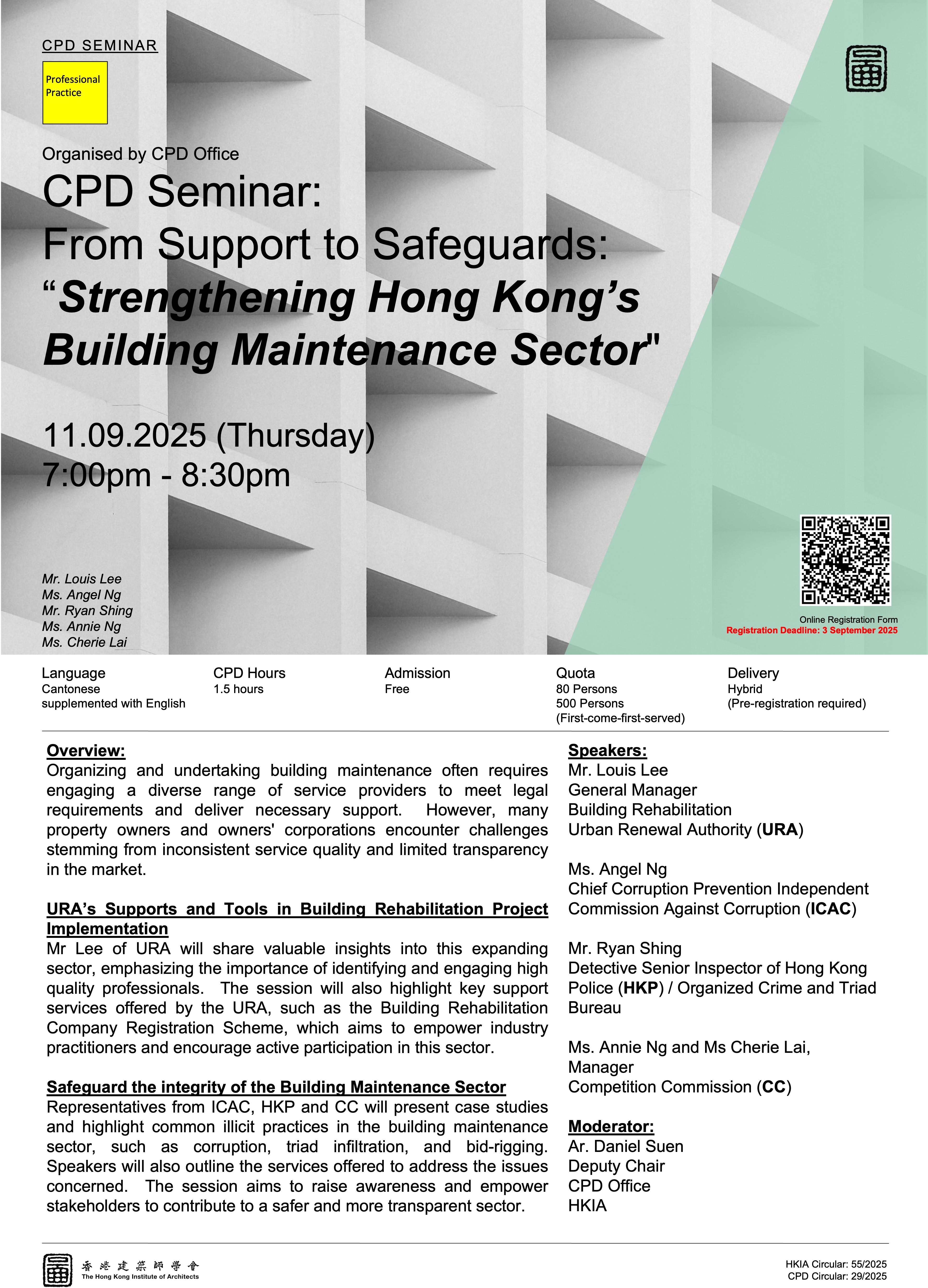 CPD Seminar: From Support to Safeguards: “Strengthening Hong Kong’s Building Maintenance Sector"