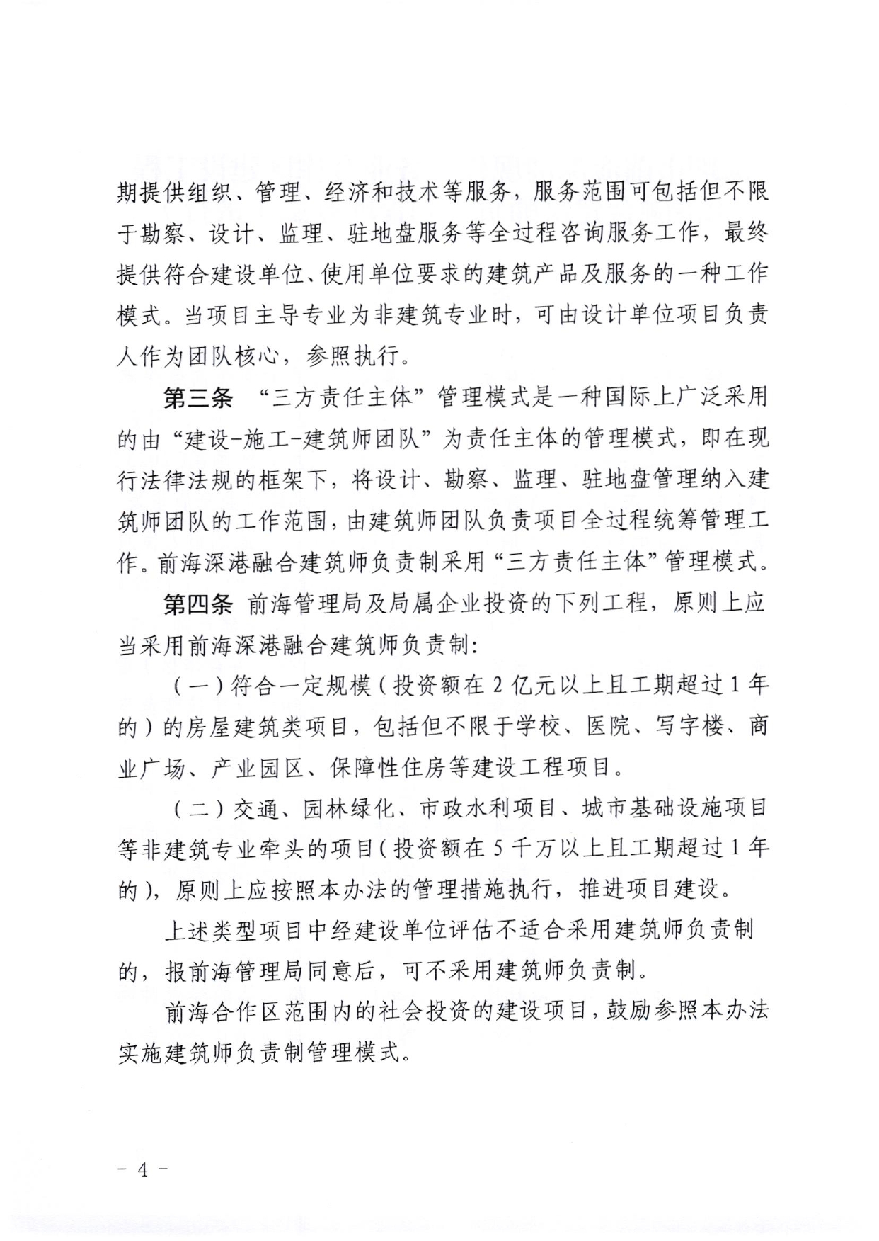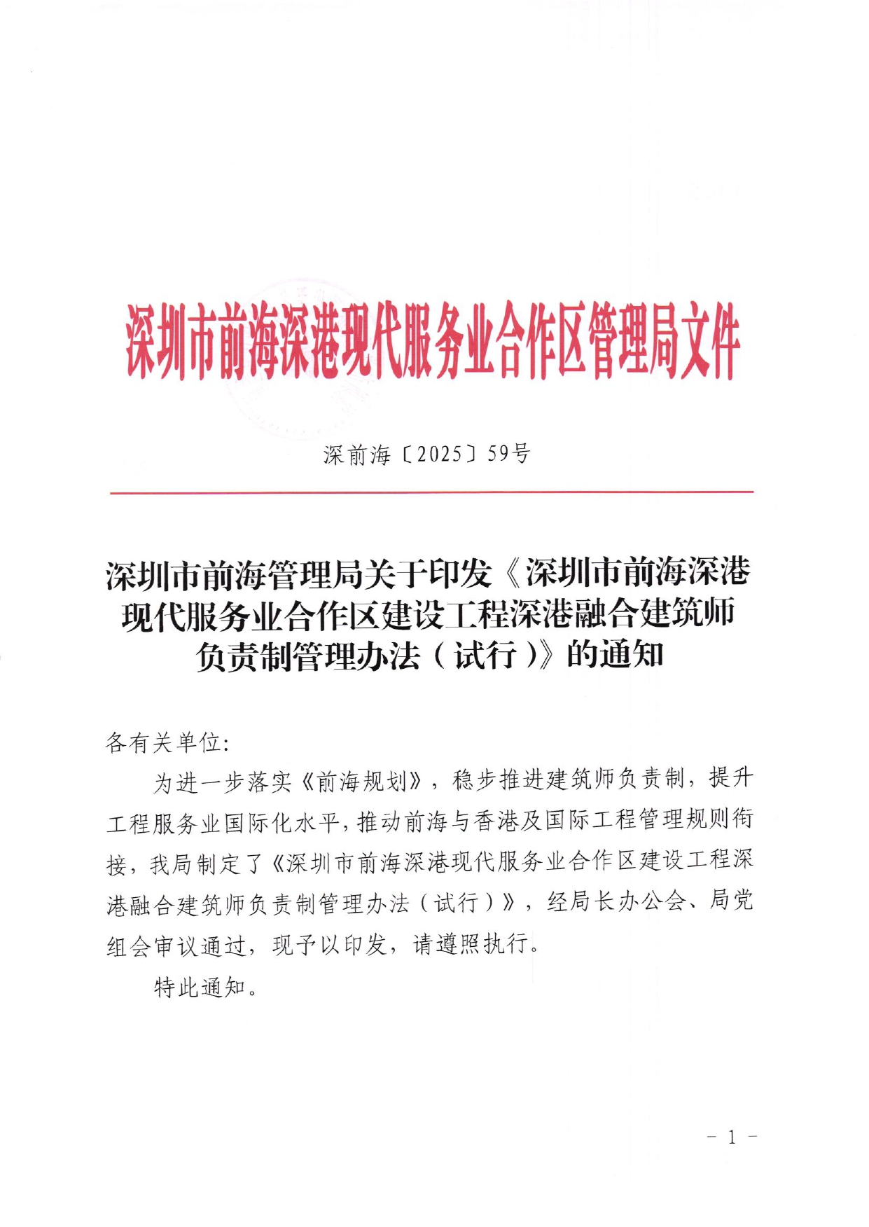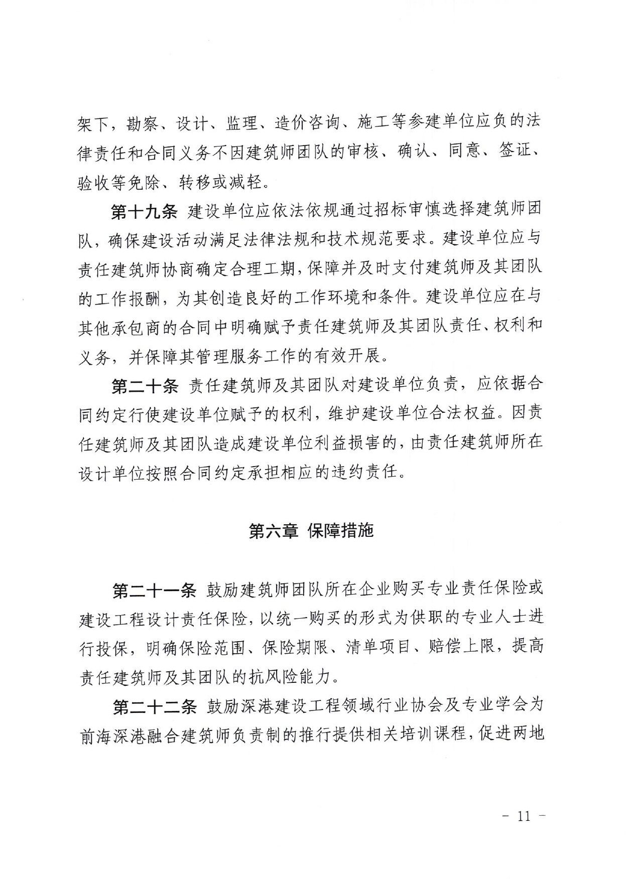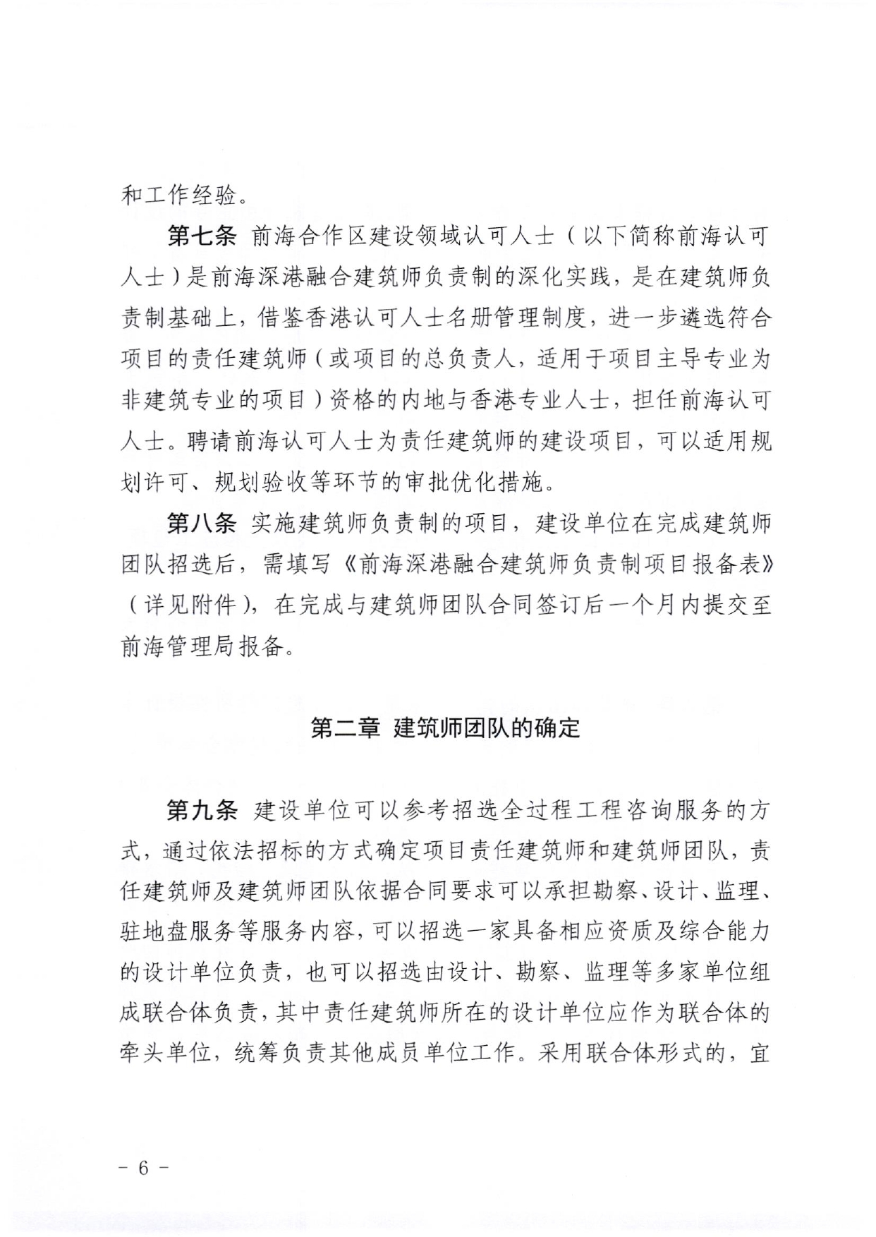 Notice from the Qianhai Authority of Shenzhen on Issuing the "Management Measures for the Architect Responsibility System in the Construction Project of the Shenzhen-Hong Kong Modern Service Industry Cooperation Zone (Trial Version)"