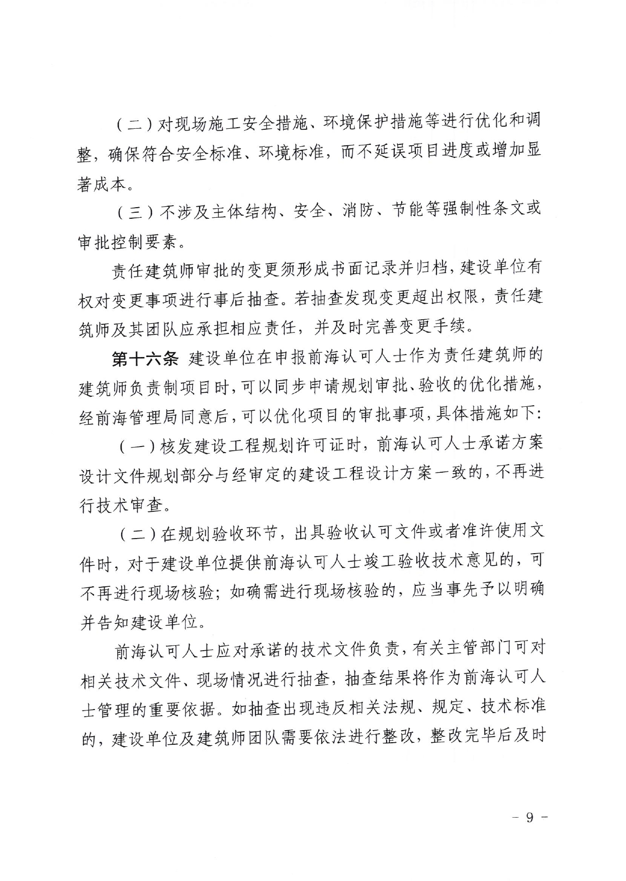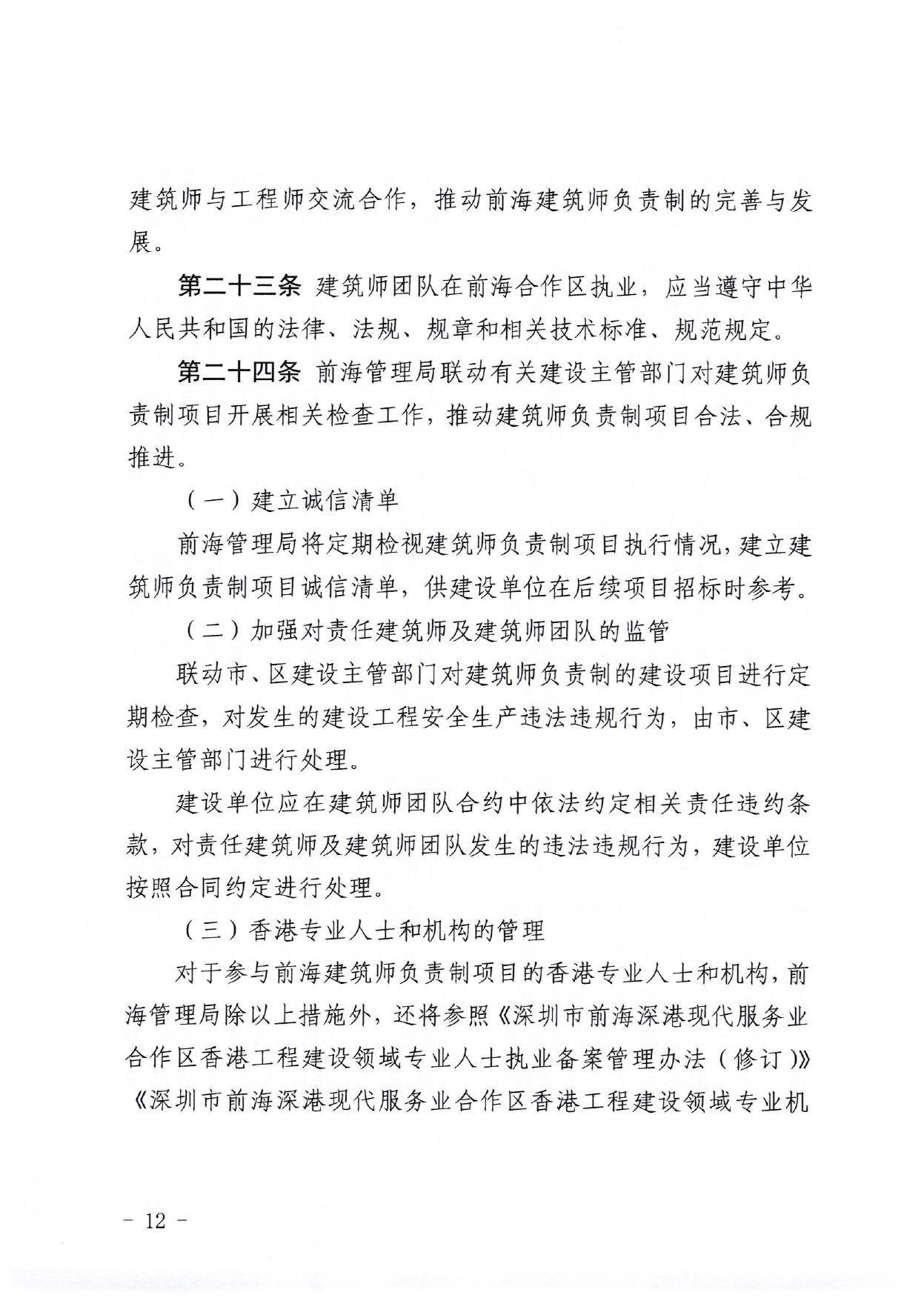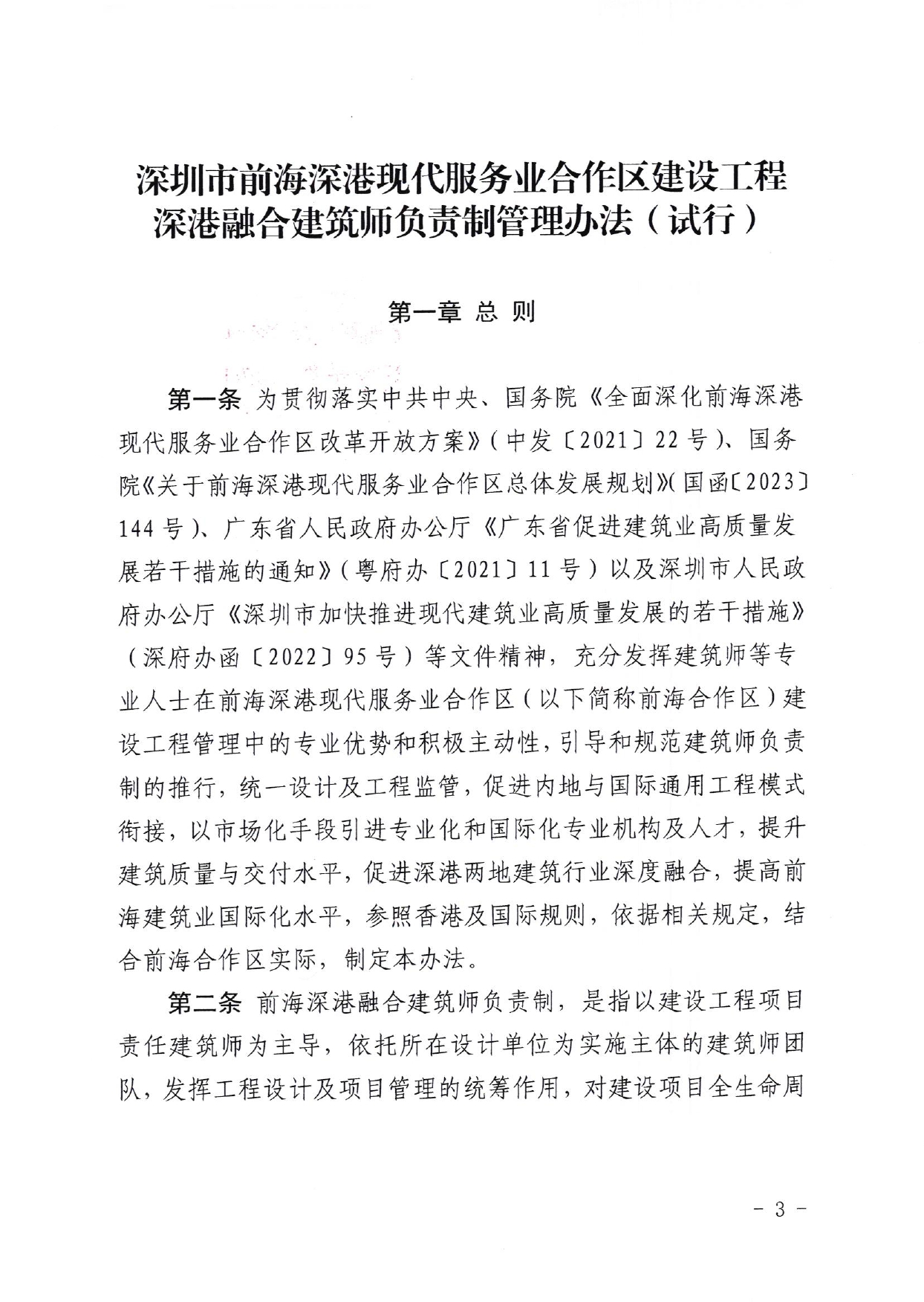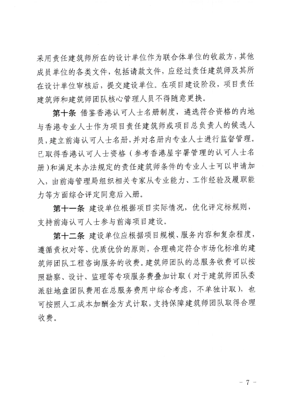 Notice from the Qianhai Authority of Shenzhen on Issuing the "Management Measures for the Architect Responsibility System in the Construction Project of the Shenzhen-Hong Kong Modern Service Industry Cooperation Zone (Trial Version)"