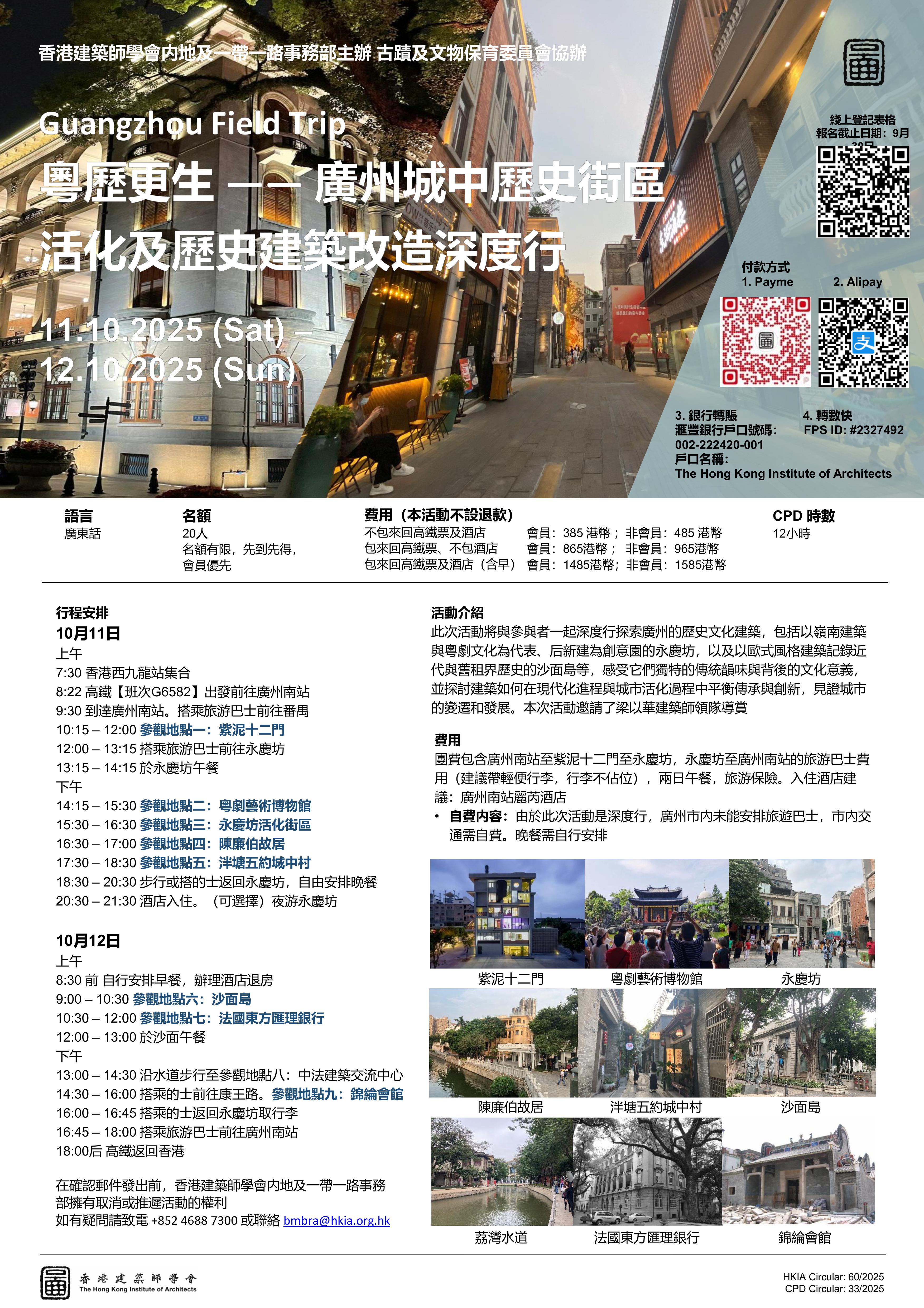 香港建築師學會粵歷更生——廣州城中歷史街區活化及歷史建築改造深度行