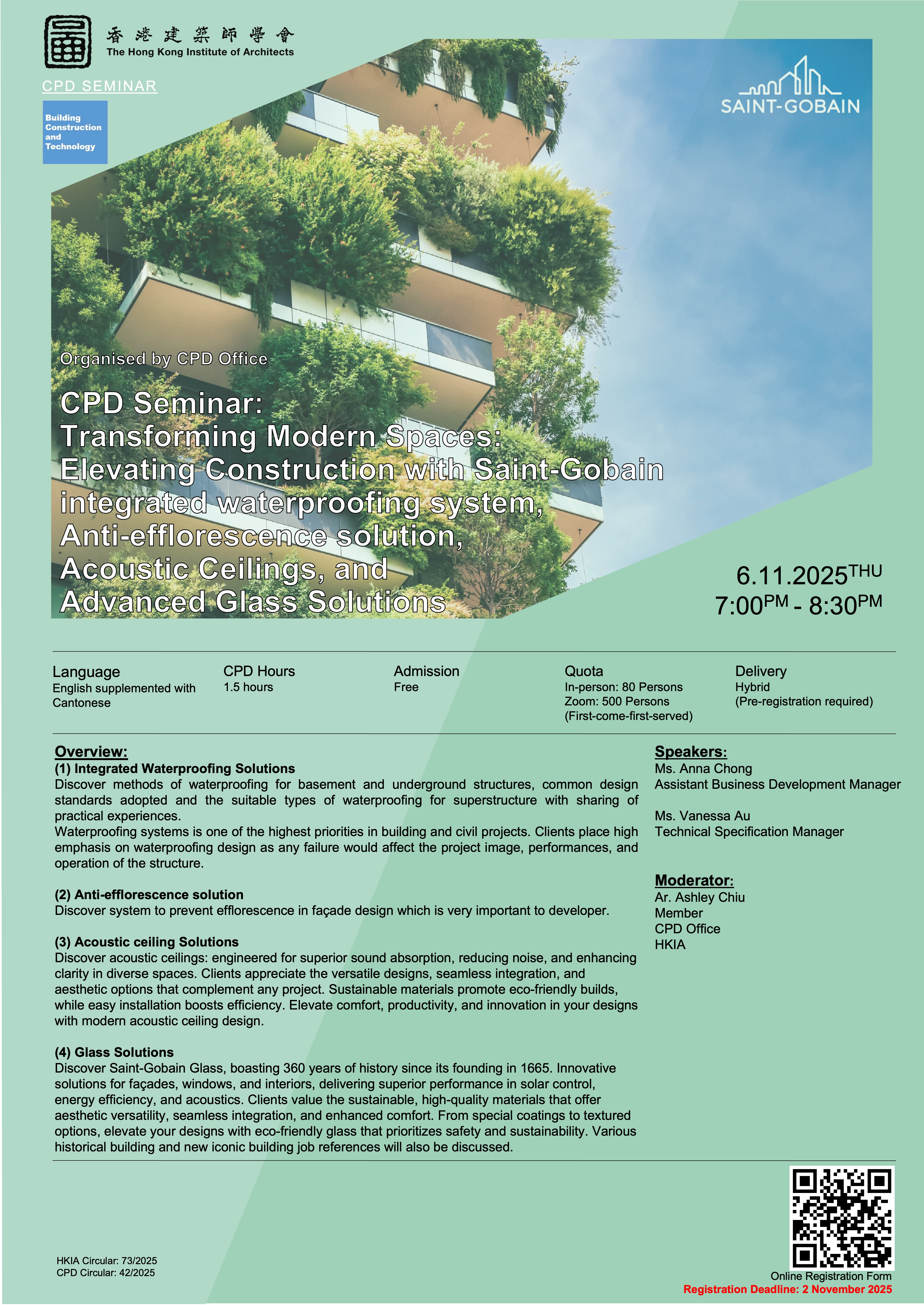CPD Seminar: Transforming Modern Spaces: Elevating Construction with Saint-Gobain integrated waterproofing system, Anti-efflorescence solution, Acoustic Ceilings, and Advanced Glass Solutions