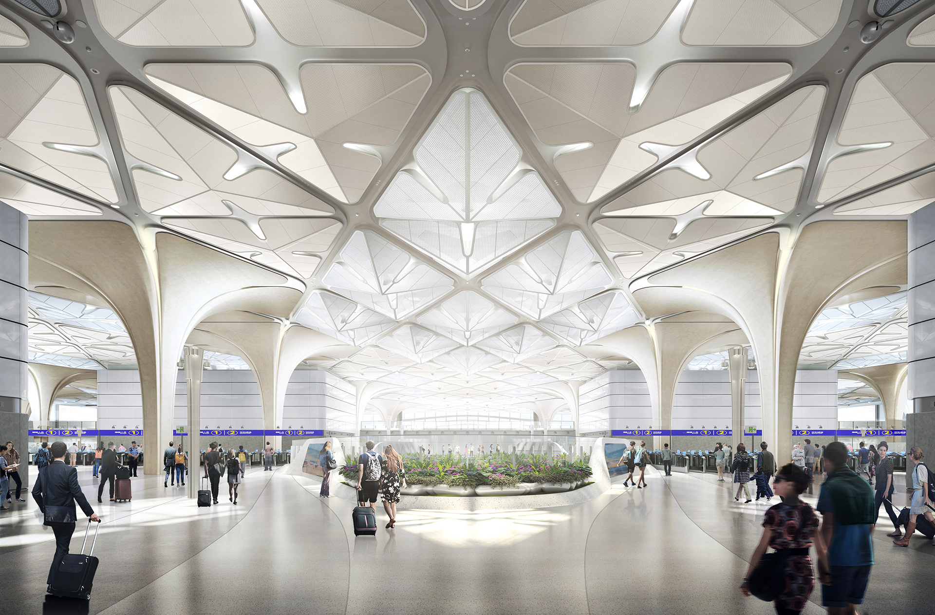 新皇岗口岸是集一地两检和轨道交通为一体的国家级陆路口岸。设计创造性地引入“垂直叠加”的策略,整合复杂功能、接驳深港交通、缩短通关距离,实现“以人为本”的发展目标。项目以“湾区基石”为概念,用稳固对称的形态,突显口岸庄重之感;室内以深、港市花为蓝本,打造独特通关体验。项目注定成为未来深港融合的奠基石。