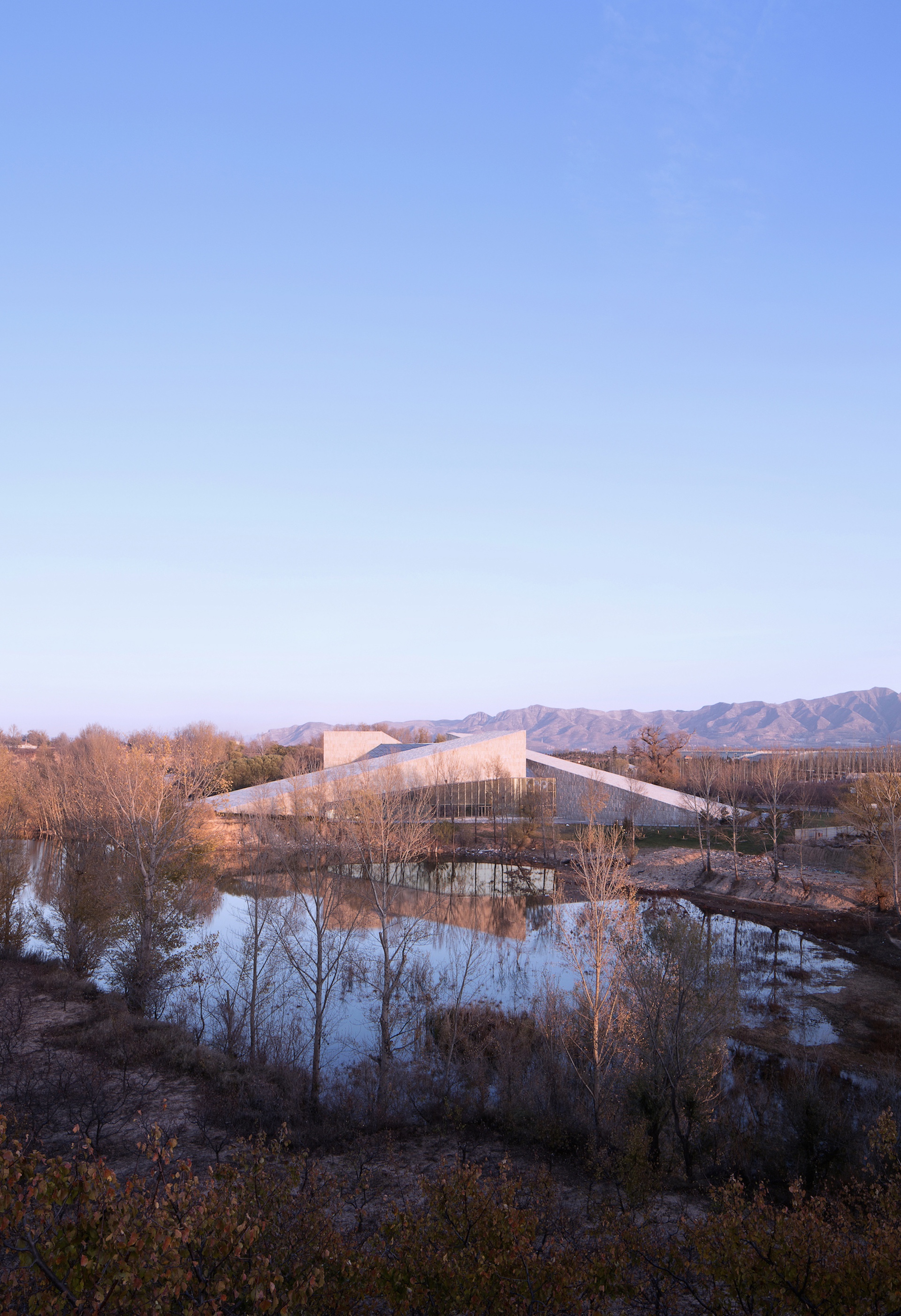 中华文明源-三祖文化博物馆位于河北省涿鹿县三祖文化旅游区,北滨轩辕湖,西望黄帝城遗址,东临三祖堂,南望合符坛。五千年前,黄帝丶炎帝丶蚩尤三大始祖所率领的部落在此交汇丶碰撞和融合,最终形成了中华文明。建筑设计以“三祖文化”为出发点,结合地形与对景关系,将三个体量从不同方向汇聚,寓意着中华文明的发源。